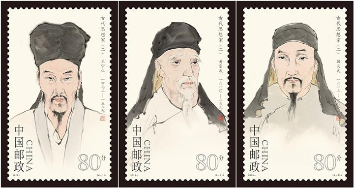 据了解,此次发行的《古代思想家(二)》纪念邮票1套6枚,全套邮票面值为6元,展现了明清两代王守仁(即王阳明)、黄宗羲、顾炎武、王夫之、戴震、章学诚六位著名思想家的风采。其中王阳明、黄宗羲、章学诚是绍兴籍先贤。