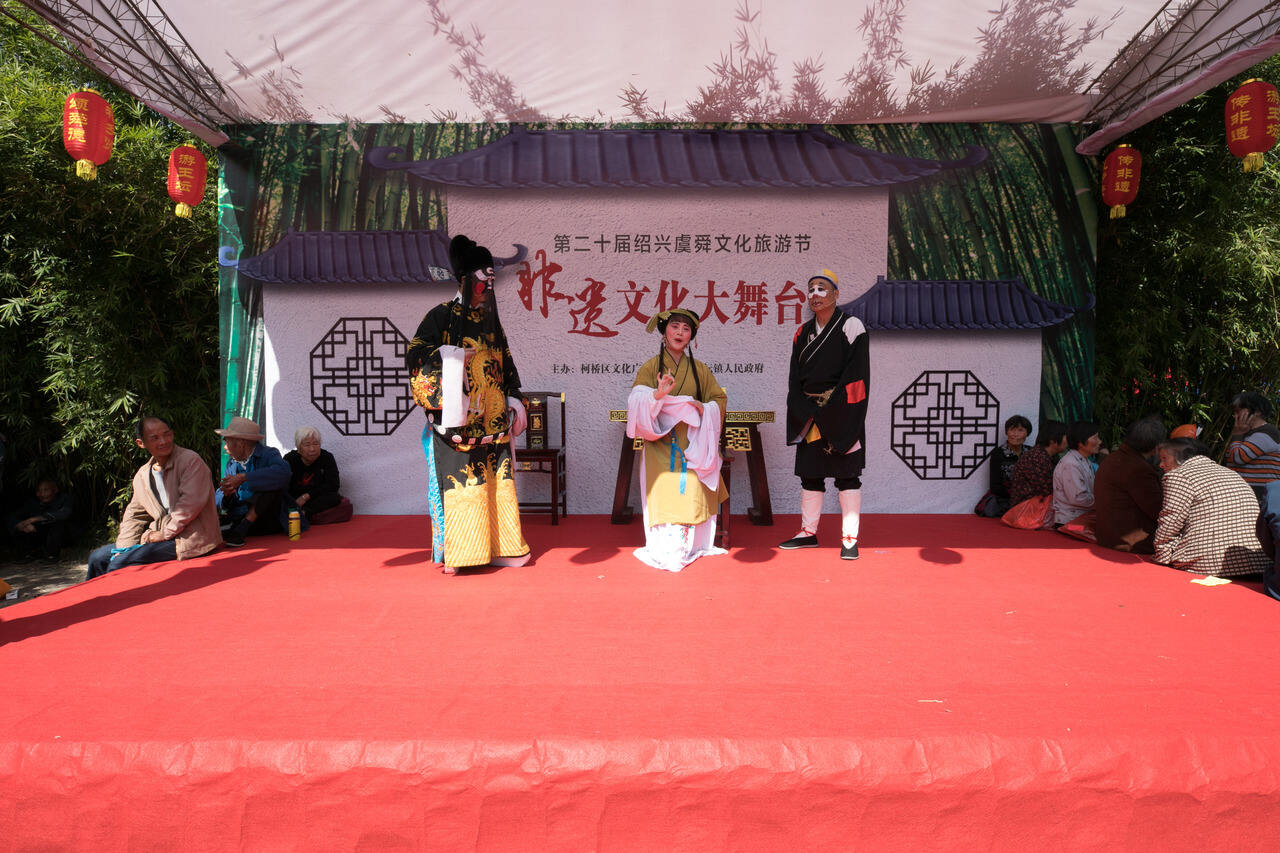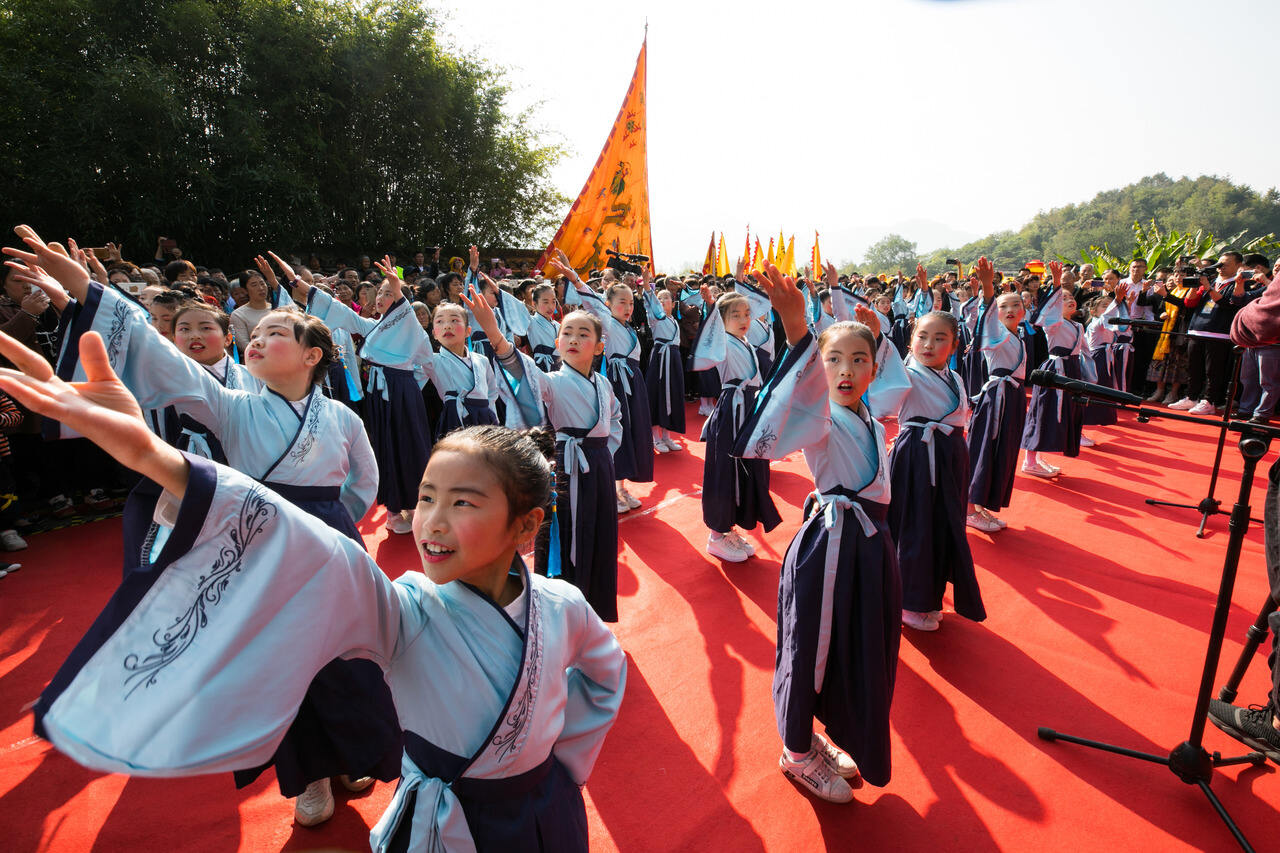 古庙旁,王坛镇小小朋友书生装扮表演了孝德文化歌曲《中华孝道》,举行了《王坛镇志》新书发布、赠书仪式,表彰了王坛镇“最美人物”和“醉在王坛”摄影大赛优胜者。古戏台上,戏曲、曲艺、杂技等民间传统歌舞杂艺表演让人目不暇接;古村道上,百名群众身着各式彩色古装,抬着舜王像,手持各种物器,舞狮舞龙,祈福祈愿,开始了浙江省非物质文化遗产活动——舜帝巡游,成为了一场行走中的非遗博物展。