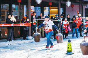 初冬暖阳下,东浦古镇徐锡麟铜像前,选手们手中的沙包纷纷向远处的积分点抛去,并以积分获取美食兑换券,过了一会,酱鸭、臭豆腐、奶油小攀等12种绍兴特色小吃就纷纷成了选手们的“囊中物”。“‘用户体验’可以说是五星级。”来自杭州的选手张女士说。