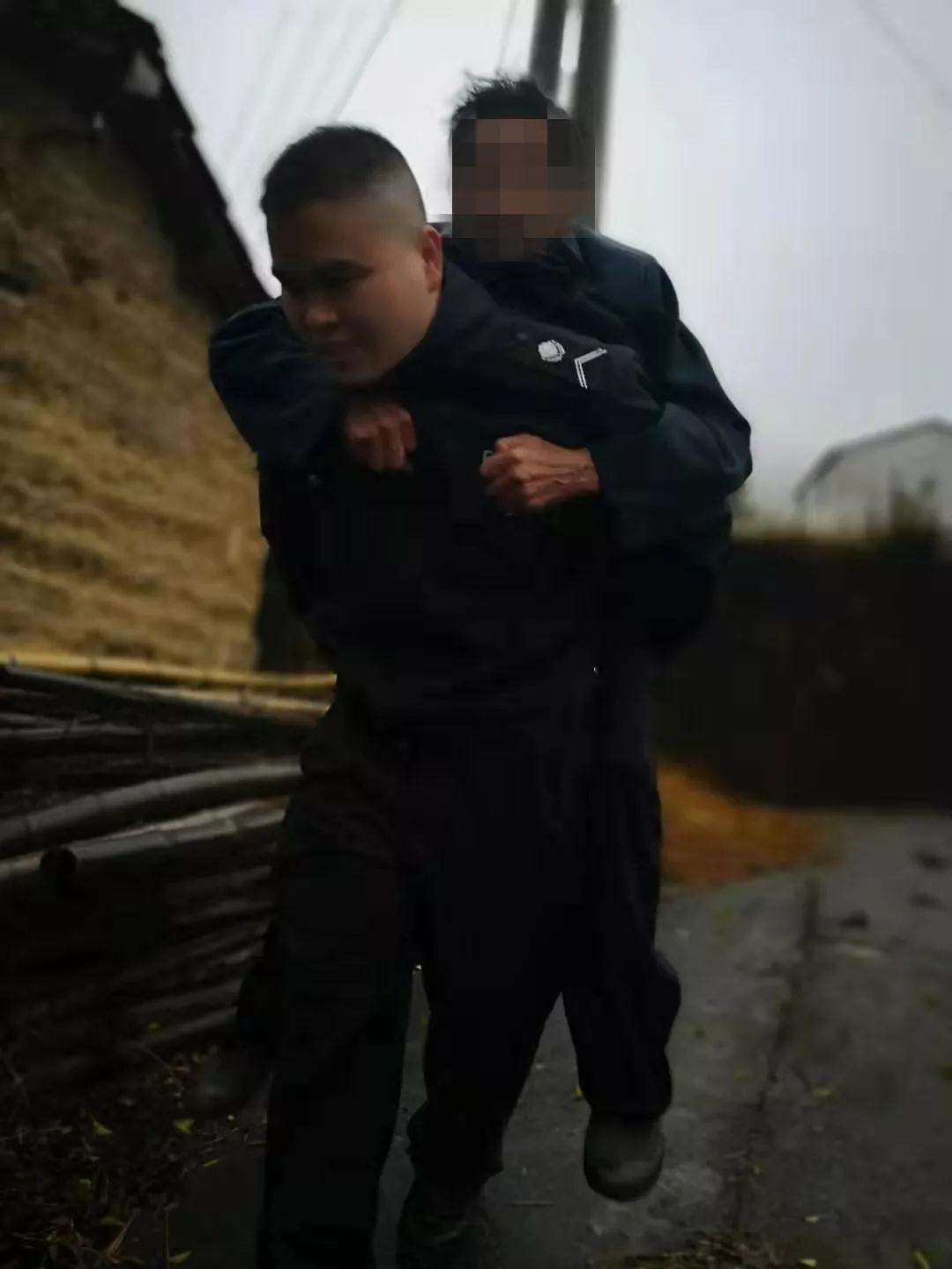 到达村口后,张成钢和许亮东两人先是将老人扶起,抬着他住家走。但发现老人根本无法走动半步,抬着他走费力不说,对老人也是折磨。这时,张成钢说道:“爷爷,我们来背你。”两人便在互相帮助下,轮流将老人背回了家。