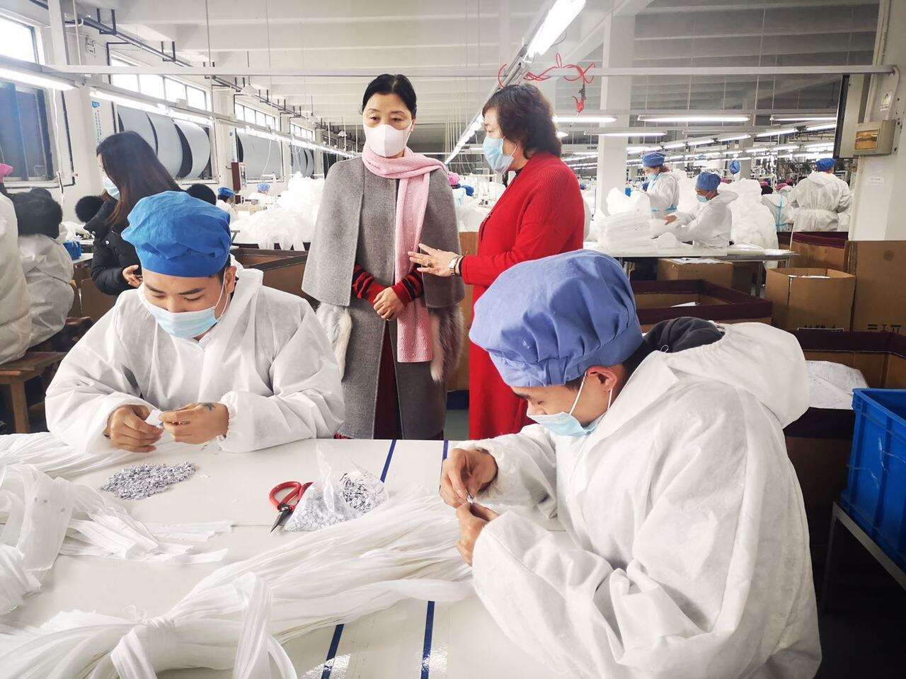“当时我看到一线医护人员的一些报道,因为没有防护服,只能穿着白大褂就上阵,感染风险很高,我看着心里很痛。防护物资全国紧缺,你要捐也买不到货,我心里很揪心。”徐爱华回忆,就在那一刻,一个念头浮上——自己的企业是不是可以来生产。