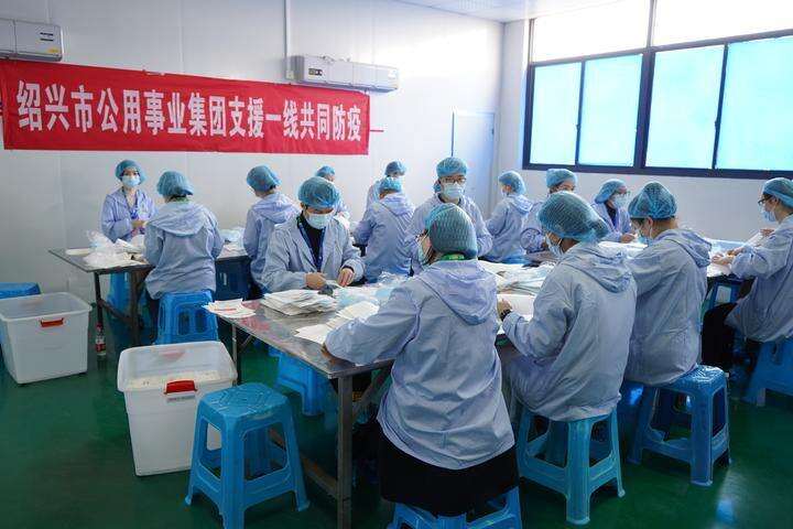 “这些小伙伴都是志愿者,来自绍兴市直机关的各个部门。疫情期间,我们组成党员应急突击队,来帮企业包装口罩。”做完简单运动后,志愿者徐哲锋一边给手消毒,一边告诉我们:“包装工作需要定期给手消毒,10时正是一个消毒时间点,所以我们索性以此为节点,安排了工间操,让大家能够站起来动一动。”