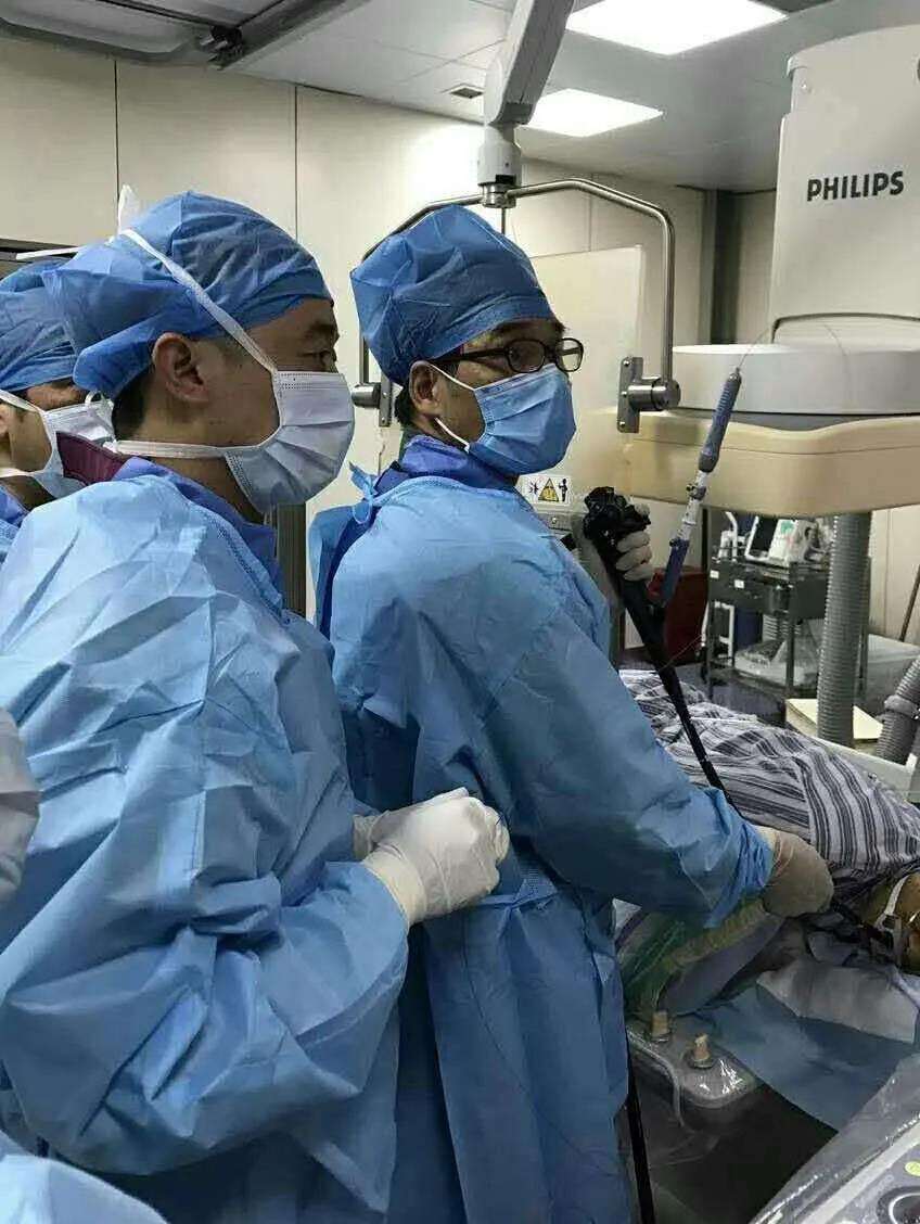 众所周知,在医学不断发展进步的今天,每一项新技术的开展和应用都会给临床工作带来许多便利,特别是在基层医院,一项新技术的开展可以造福当地患者,使其免于奔波上级医院,在家门口就可以享受高水平的医疗,因此对新技术的开展需求是十分迫切的。超声内镜技术(EUS)就是这样一项技术难度高、临床功效大的新技术。在医院托管之初,院领导就以发展的战略眼光购置了最先进的电子线阵式超声内镜。然而由于操作技术要求极高,一直未能很好地开展。蒋天安教授的到来为我们解了燃眉之急,在他的亲自带教下,不仅开展了常规的超声内镜引导下细针穿刺活检术(EUS-FNA),解决了大量疑难肝胆胰疾病的早期诊断,还灵活地应用到一些复杂肝胆胰疾病的治疗中,带领我院开展了一系列高端的超声内镜下微创诊治技术:超声内镜引导下胆肠吻合术(EUS-CDS )、超声内镜引导下胰腺假性囊肿内引流术(EUS-PPCs)、超声内镜引导下腹腔干神经丛阻滞术(EUS-CPN) 等,有效地提高了临床诊断及治疗的精准性,改善了患者的生存质量,且开展至今零术后并发症,深受临床医生和患者的好评及欢迎。