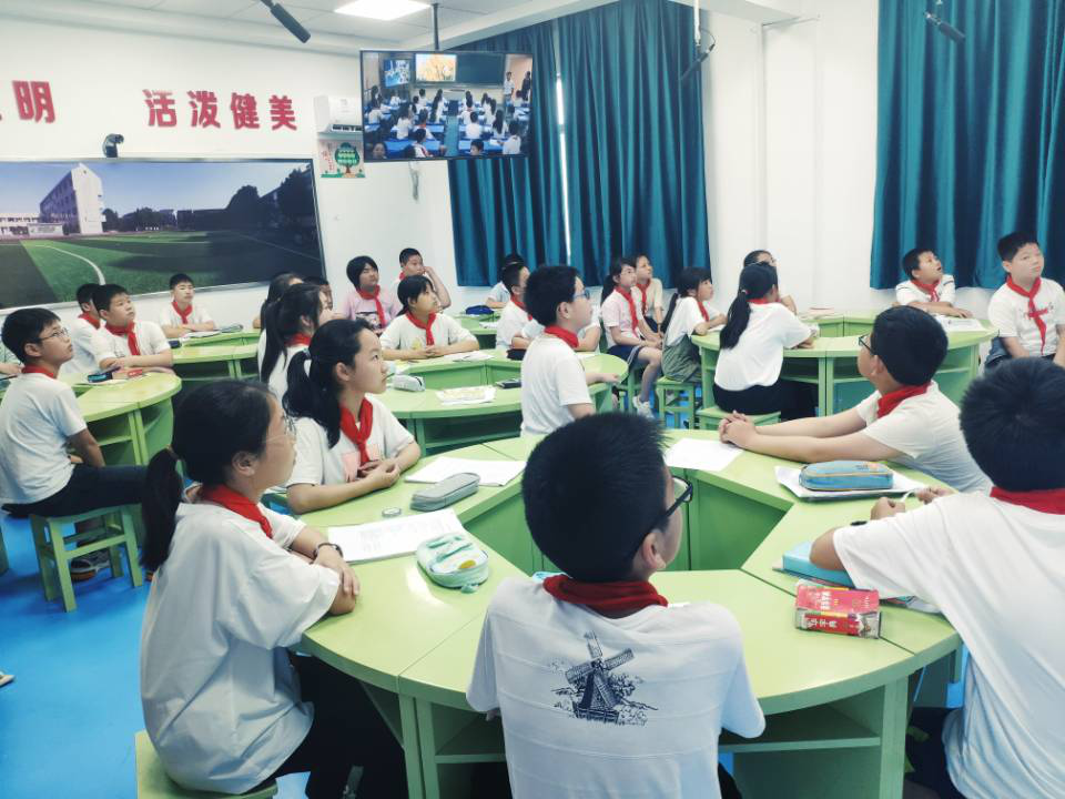 这节课,中国轻纺城小学钟雯老师担任主授课老师,王坛镇中心小学张利华老师辅助教学,两个班的学生在两名老师的带领下,走进经典文化作品《诗经》。课堂中师生互动活跃,激活了学习思维,激发了学习古典诗词的浓厚兴趣。课堂上,钟老师多次邀请王坛这边的同学回答问题。在有趣的课堂教学中,学生学得主动、学得扎实。王坛镇小的学生完全没有意识到自己与钟老师的空间距离,犹如置身于同一课堂。