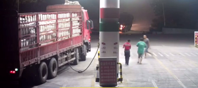 加油站旁的卡车突然起火 他们毫不犹豫冲了上去!