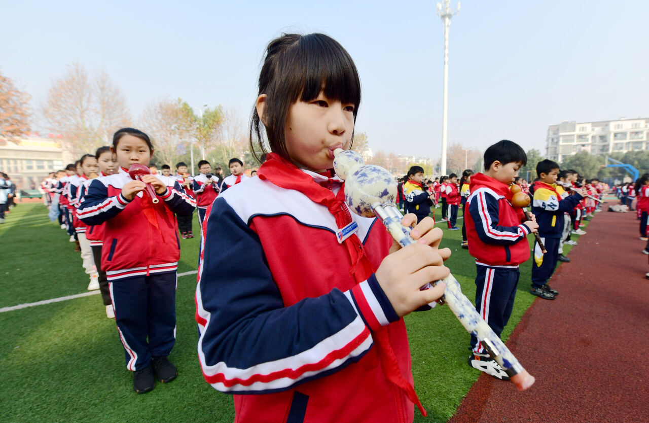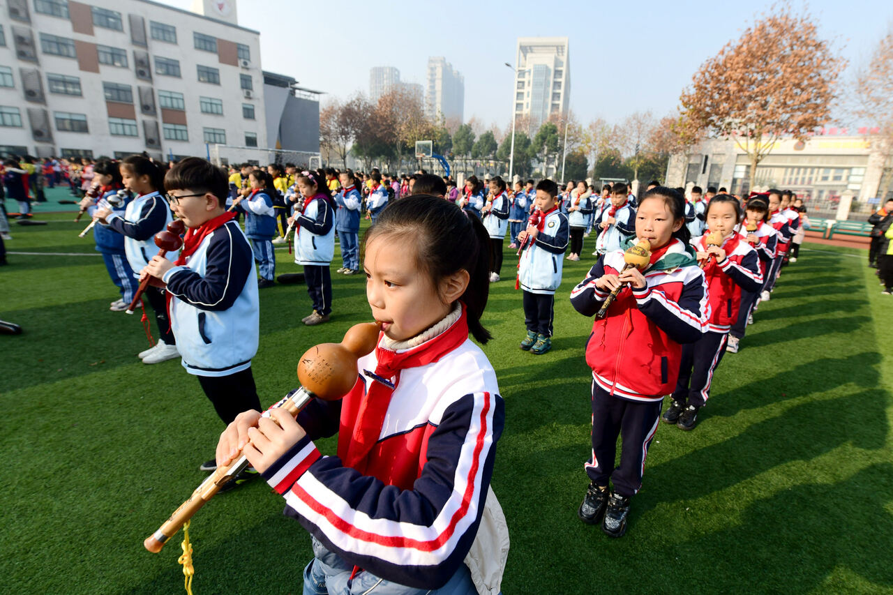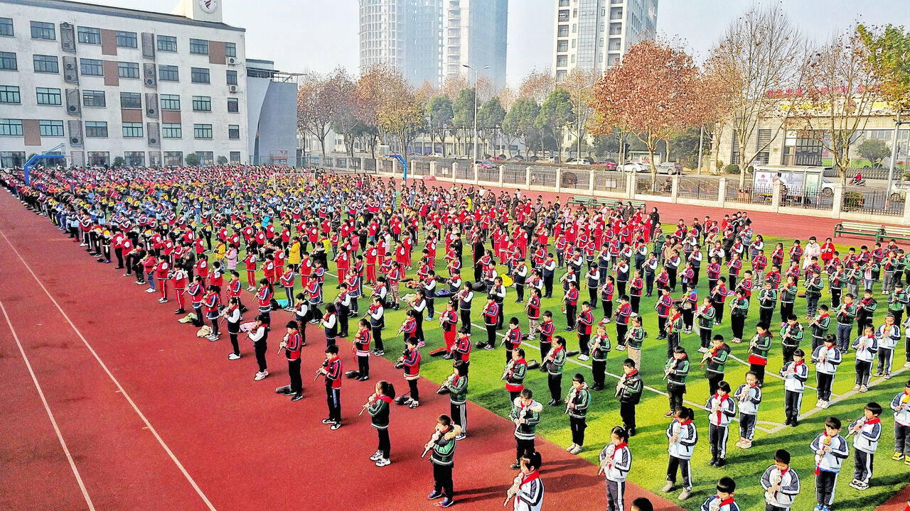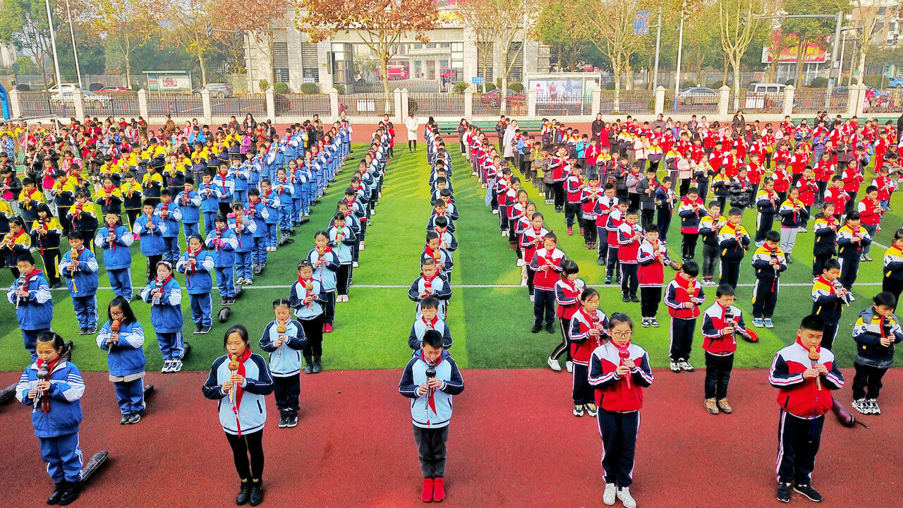12月28日,在绍兴文理学院附小,1400多名小学生兴高采烈地吹着中国民族传统乐器葫芦丝,经典名曲《月光下凤尾竹》《竹林深处》,娴熟流畅,欢快的音乐在操场上响起。当天该校举办了“畅想新时代 奔向十四五”为主题的迎新年庆祝活动。