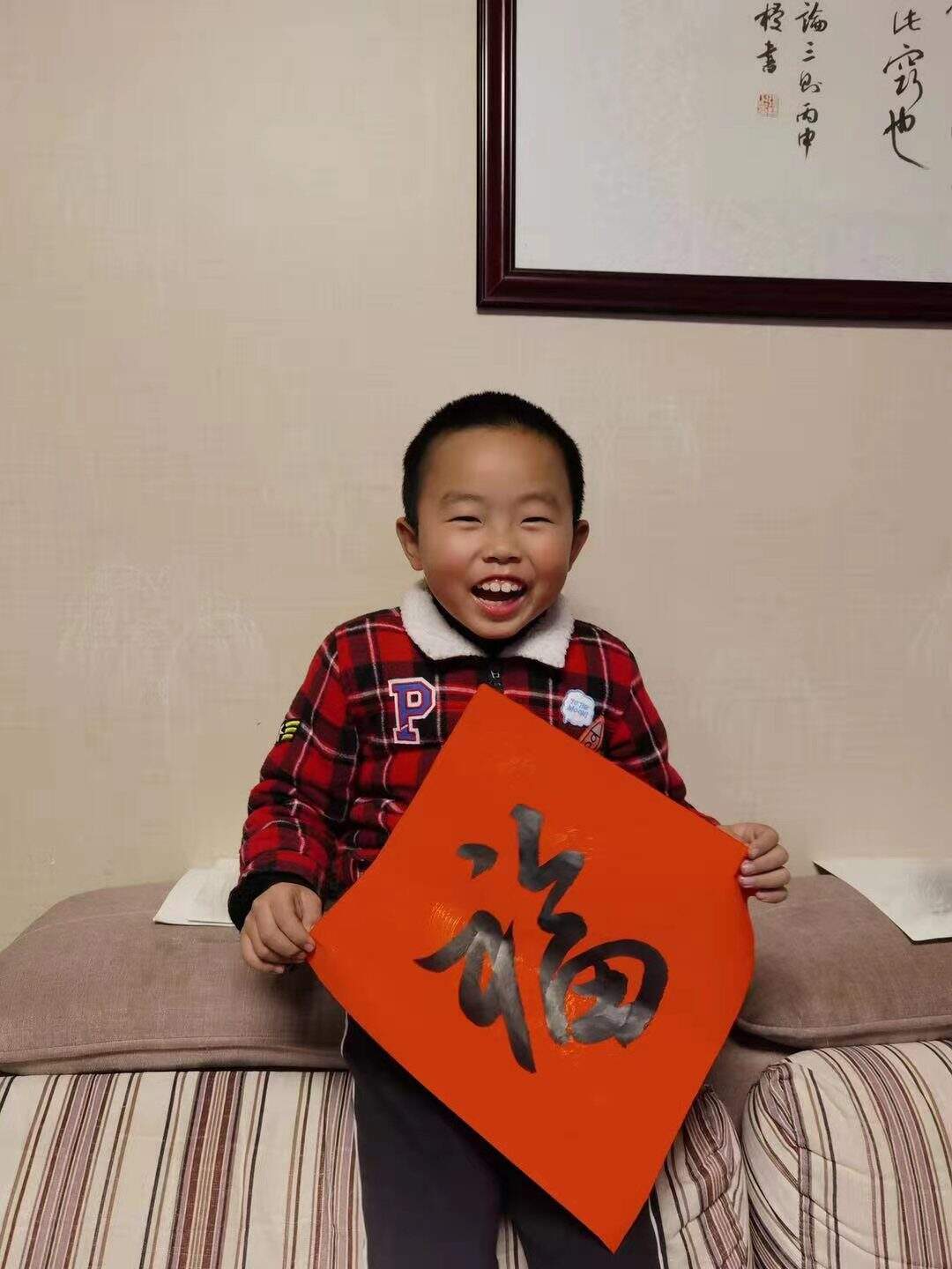 嵊州市人民医院(浙大一院嵊州分院)内镜中心护士尹芳洁8岁的儿子蒋奕昕,为妈妈工作的科室写春联,还现场挥毫写福,送给内镜中心的每一位叔叔阿姨,送上他最美的心意和祝福。