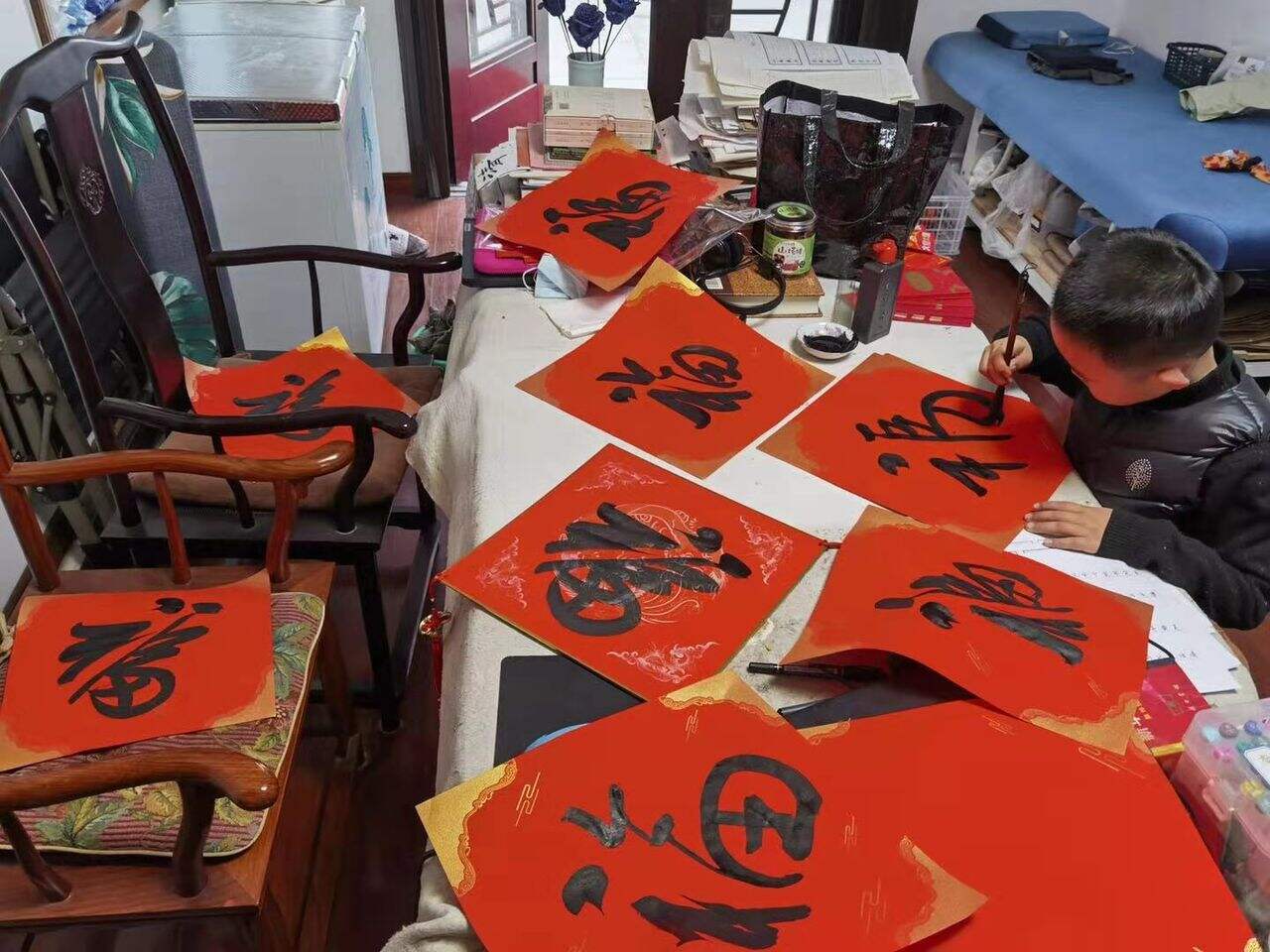 暖心!8岁男孩为护士妈妈挥毫送福
