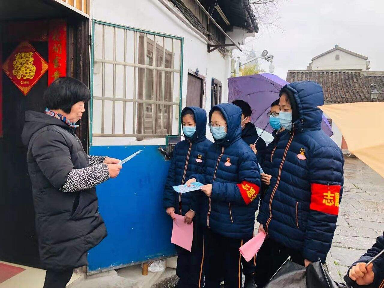 元培中学初一(16)班的同学,利用春节放假之际,戴上口罩,拿上宣传单,走进八字桥社区宣传疫情和慰问留在浙江绍兴过年的外地叔叔伯伯们,给他们添上了一份留浙过年的温暖。