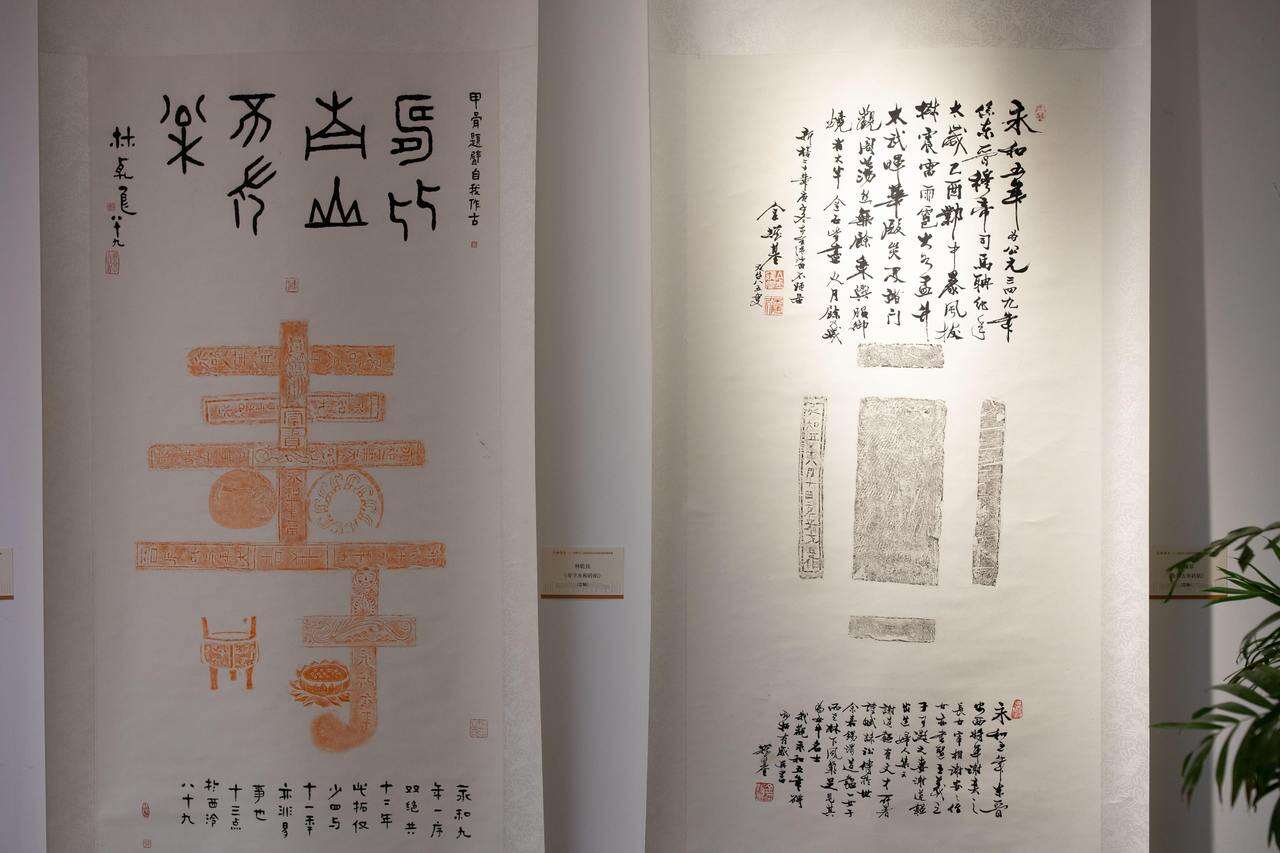 古有兰亭雅集,今有永和雅集。 4月7日,在第三十七届兰亭书法节开幕前,绍兴市上虞区会稽金石博物馆联合西泠印社举办"永和雅集---永和十二品西泠印社全国名家题跋邀请展"。中国文联副主席、西泠印社副社长兼秘书长陈振濓告诉记者,西泠印社弘扬金石文化,重振金石学,致力于把流传有序的金石文化发扬光大。本次活动由绍兴市上虞区会稽金石博物馆提供精美拓片,敦请西泠印社及国内部分海内外书画名家,在会稽地区遗存馆藏晋代永和纪年砖铭拓片、锦灰堆上题跋书画创作200余件名家作品以及馆藏永和砖、砚等共302件展品。