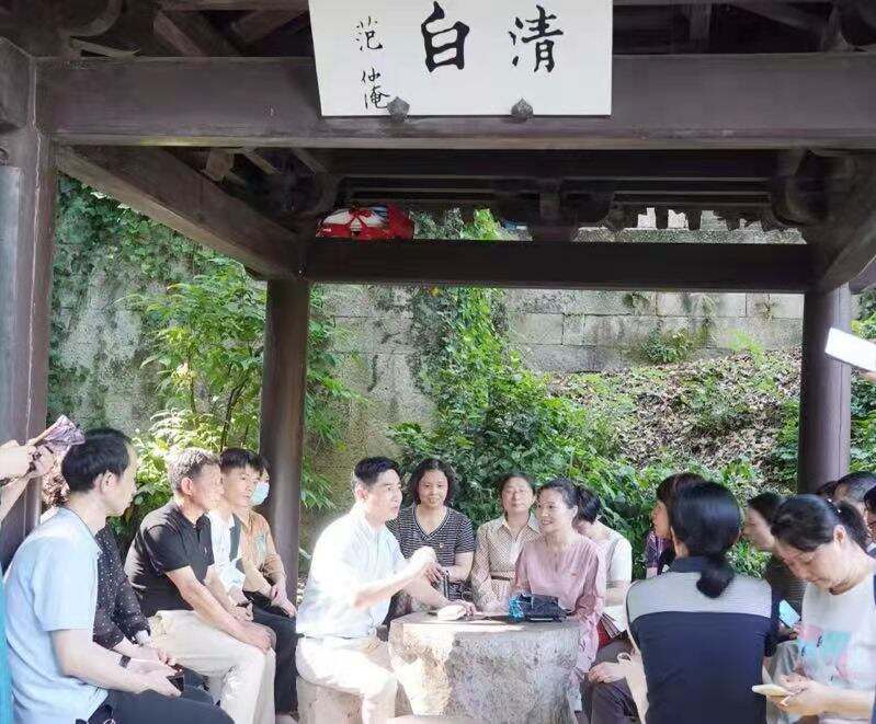 大家一路参观了清白堂、清白亭、清白泉,细读《清白堂记》,聆听范仲淹的清白故事,深刻真切体悟“清白而有德义”、“所守不迁”、“所施不私”的清廉内涵和高尚情怀。同时,医院还在清白亭里就地组织开展廉政警示教育“微讲堂”,由设备、总务、药剂、检验、临床等科室代表围绕医院“清白做人、悬壶济世”清廉品牌,结合岗位实际,结合参观体会,共话清白廉洁。