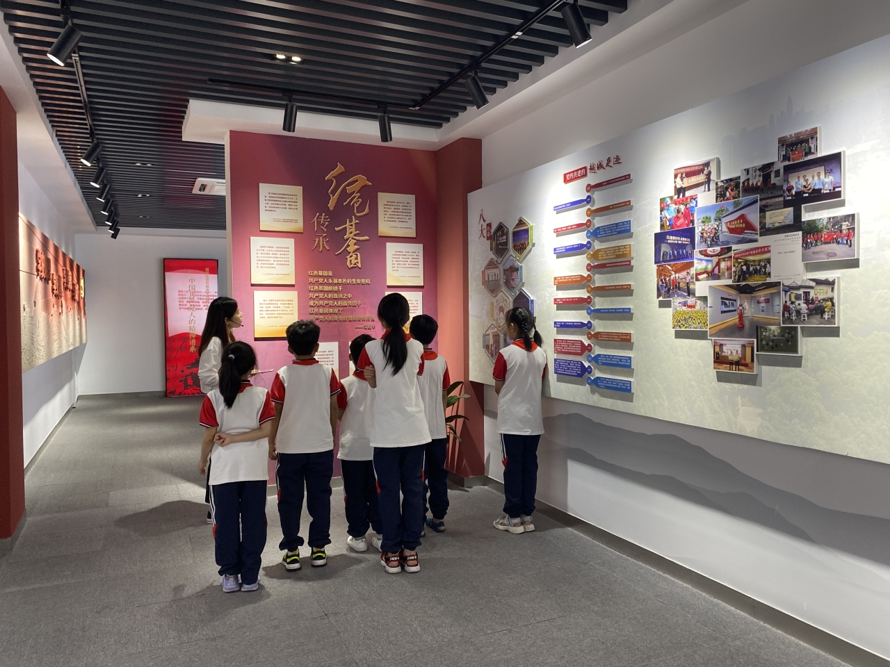 2021年7月7日下午,在这个具有特殊纪念意义的日子,鲁迅小学人民路校区三九班中队“向日葵小队”古韧悯、桑果、蒋昕恬,章乔赫、王焓逸、潘宇辰一行六人,在各位家长的陪同下,来到中共绍兴市越城区委党校,参观学习越城区党性教育主题展(第三期)“中国共产党人的精神谱系”。党校老师运用深入浅出、生动形象、声情并茂的讲解方式,为小队员一一讲解了红船精神、长征精神、井冈山精神、遵义会议精神、抗战精神、红岩精神、延安精神、西柏坡精神、抗美援朝精神、雷锋精神、红旗渠精神、焦裕禄精神、两弹一星精神、孔繁森精神、抗震救灾精神、抗洪精神、特区精神等。党校老师在讲解的过程中,考虑到小学生们的接受特点,灵活运用了图片展示、互动问答、队员朗诵、复原现场、红歌MV展现、过关考试等形象化的方式来帮助小队员理解各精神谱系的内涵。例如,让小队员们戴上特定的辅助视听设备,进入被还原的历史现场,真实感受红军长征时爬雪山、过草地、飞夺泸定桥的壮烈场景,从而深刻体会红军身上所体现出的不怕任何艰难险阻、勇往直前的大无畏精神。党校老师最后还带领学生了解越城区包括周恩来纪念馆在内的诸多红色景点,希望小队员们以后有机会去参观学习。
