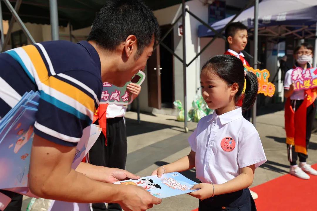 长长的红地毯映照着孩子们稚嫩的脸蛋,一个个就像红彤彤的苹果,充满了阳光的气息。伴着欢快的音乐,沿着红地毯,孩子们走过了寓意推开知识大门的“启智门”,收获了校长们赠送的《文明礼貌元培娃》,意味着就是一名真正的小学生啦!