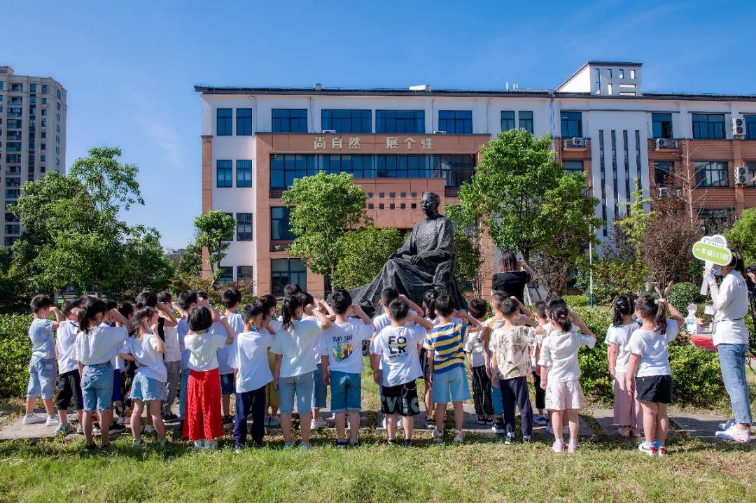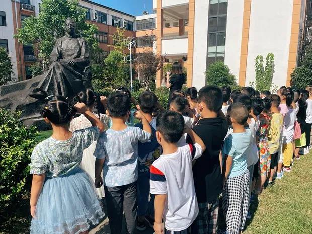 元宝们在蔡爷爷的铜像前,向蔡爷爷庄重地鞠躬,行拜师礼。
