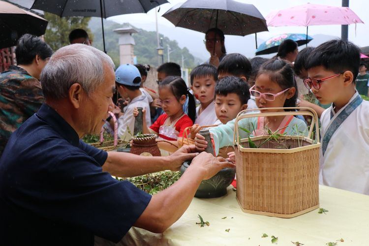 “大自然就是中药的世界,中药就在我们的身边。”张珍珠向小朋友介绍道。小朋友背着小背箩,沿着山路找寻他们记忆中的中药,大家一边采,一边问张珍珠奶奶、老师和身边的小伙伴。在张珍珠的指导下,三味中药都齐全了。“我们要用右手拿稳玉杵,然后把三味中药一点点放进捣药臼里,用巧劲把草药慢慢捣碎,太多了药捣不碎,太用力了,汁水就会溅到衣服上。”张珍珠边演示,边研究玉杵捣药,捣药臼沉甸甸的,要很用力才搬得起来,这个玉杵都没看到过,就像一个粗粗的棒子,居然这么重,怪不得能捣出药汁。张奶奶说,长口腔溃疡的时候,用这个中药敷在上面,伤口会好得很快,中药真是太神奇了,大家纷纷发出惊叹。经过识药、采药、捣药,孩子们多角度地体验了中医药文化精髓,在动手操作中感悟了中医生活的大智大慧,体会了中医药文化的博大精深。