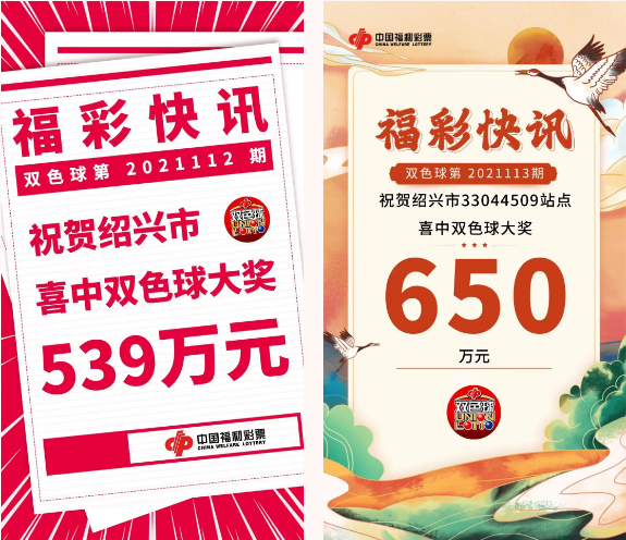 绍兴彩友一前一后抱走539万+650万双色球头奖!共计1189万元!