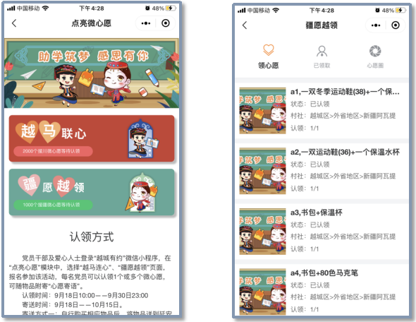 “一直以来,我们在越城区自主搭建的‘浙里共建’数字化应用场景内都在开展针对本地困难群体的‘微心愿’认领项目。前段时间,在与越城区援川、援疆干部的交流中,我们发现,我们的对口帮扶地区也有许多孩子有着自己的‘小心愿’,那我们为什么不能打破空间的限制给予帮助呢?”谈及跨越千里收集“微心愿”的初衷,越城区委组织部副部长杨枝华这样说道。