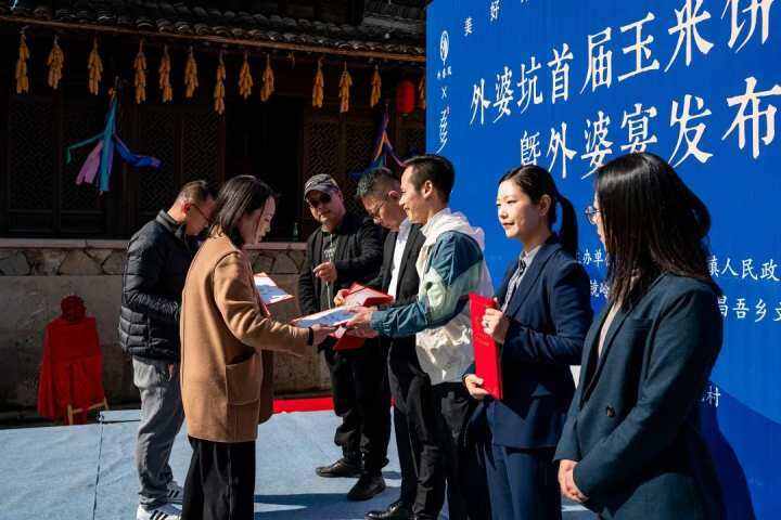 浙江在线11月27日讯(记者 孙良 通讯员 刘园)11月27日,“美好外婆家 齐心共富路”外婆坑首届玉米饼制作大赛暨外婆宴发布仪式在新昌县镜岭镇外婆坑村举行。