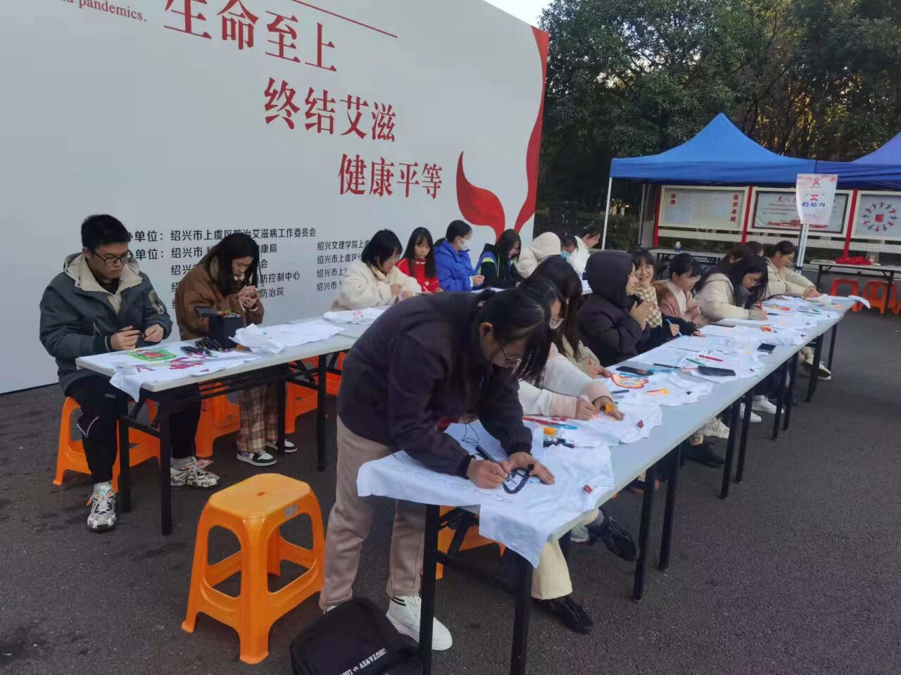 近日,绍兴文理学院上虞分院在东山书院门口举行“因爱同心,防艾同行”主题防艾活动。本次活动共分为四个部分——“艾的检测”“艾的抱抱”“因艾前行”“为爱作画”。下午一点整,不少同学已经早早来到了打卡纸领取点自觉排队,期待着本次活动的正式开始。当午后的阳光和煦地洒落,活动也终于开始。同学们安静有序地领取打卡纸,来到了各个打卡点进行活动打卡。
