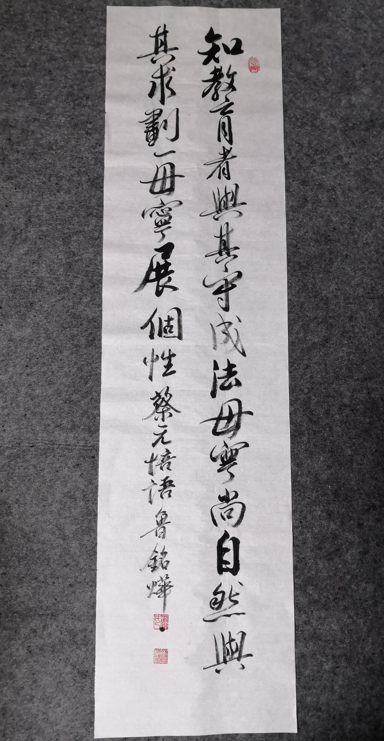 六年级学生尽情挥洒笔墨,书写先生名言名句,抒发对蔡元培先生淳淳的敬爱之情。