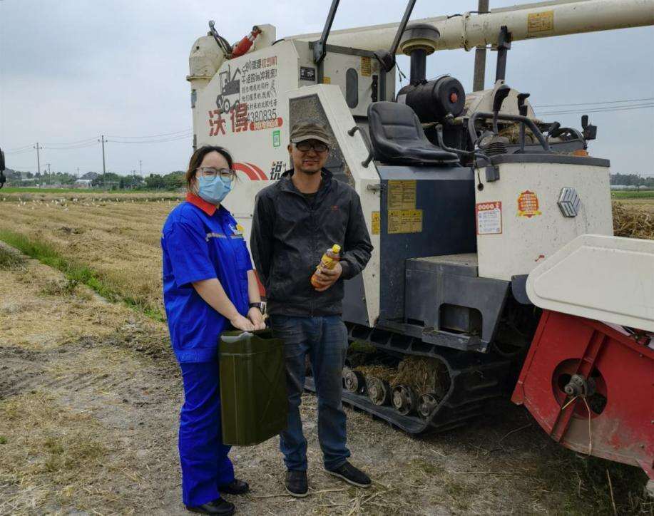 5月的一天中午,中国石化浙江石油绍兴上虞世纪大道加油站站长任坚拜访完客户,正在赶回加油站的路上,突然看到一辆拖车打着双闪停在路边,车上还装着几台收割机,一名农户在旁边唉声叹气。