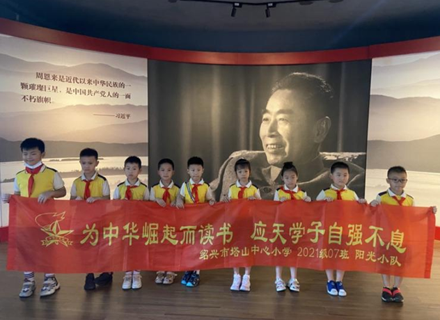 近日,绍兴市塔山中心小学“2021级7班阳光小队”新入队的少先队员们来到绍兴周恩来祖居,开展了一次主题教育活动。