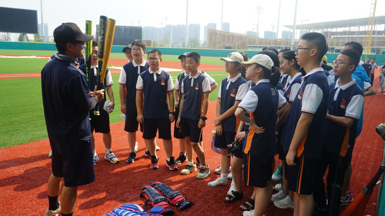 来到球场门口,队员们最直观的感受就是气势宏大、风格独特。据场馆工作人员介绍说:“整个球场占地245亩,分为A、E两个地块,总建筑面积16万平方米,是目前国内规模最大的棒(垒)球场馆。”