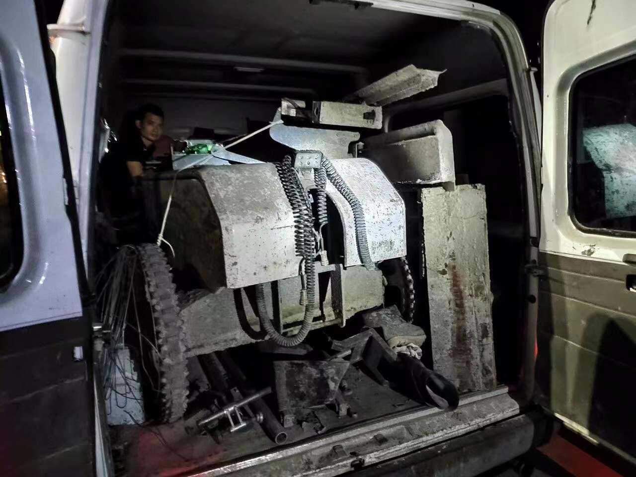 据该车驾驶员王某讲,他装的是一台工地上平整混凝土用的激光整平机,因为诸暨那边工地要得急,他就装在面包车上连夜给送过去。