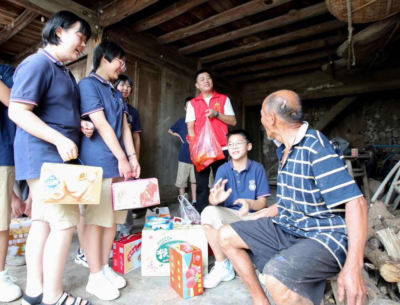 志愿者们走进新昌县马面山村,看望舒柏堂老人,学生们在老人协会,志愿叔叔们的指导下,打扫老人的的房间,洗衣服,整理杂物,擦桌子,扫地,叠被子等,帮助老人有了一个干净舒适的生活环境,老人脸上露出了开心的笑容,拉着志愿者的手久久不愿放手,表示感谢。