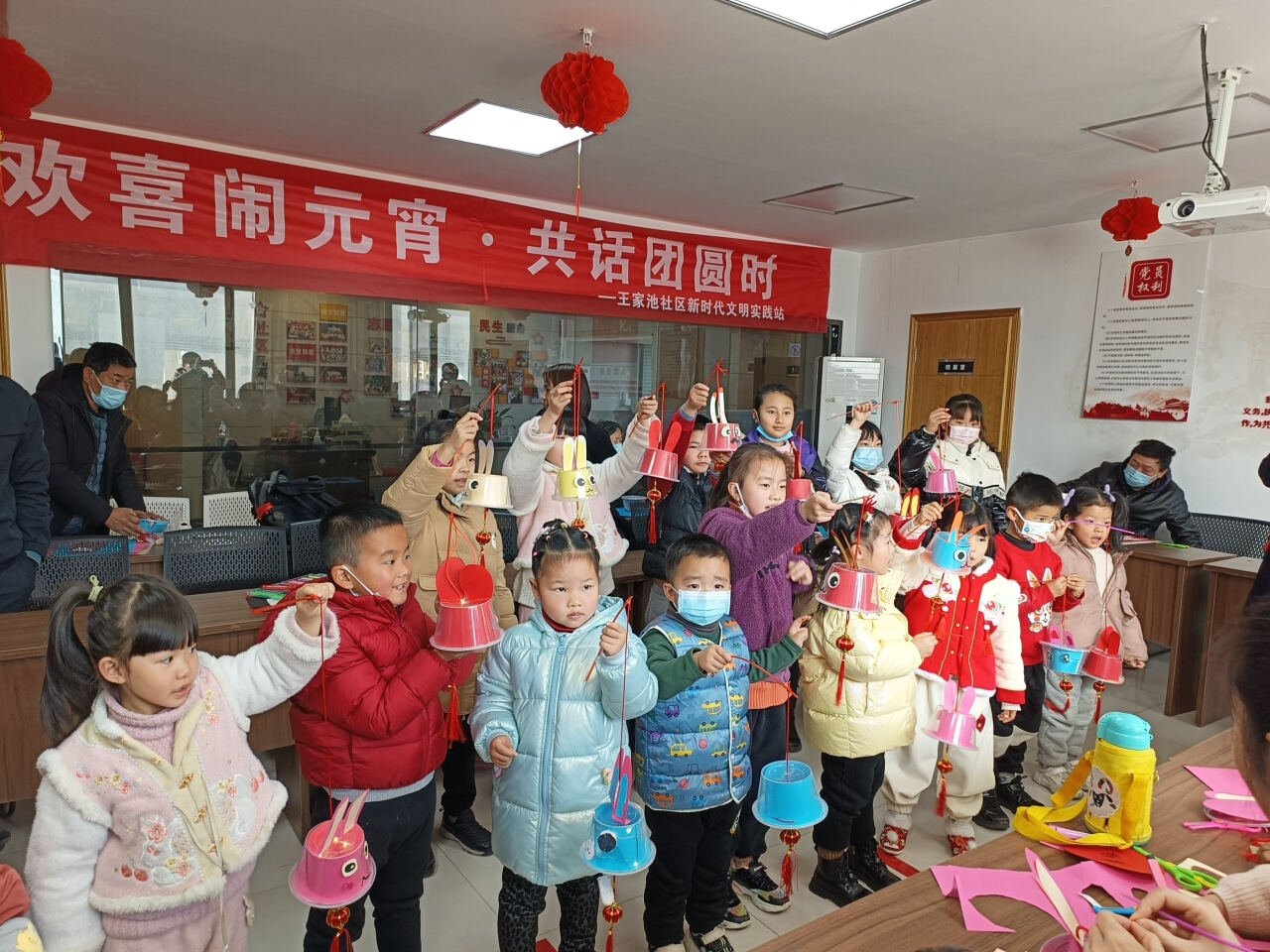 为弘扬中国传统文化,让社区居民进一步了解元宵的深厚文化底蕴,丰富居民文化生活,传递节日祝福,在元宵佳节到来之际,王家池社区邀请辖区内大小朋友们参加“欢喜闹元宵·共话团圆时”元宵活动,并以新春祝福、话说元宵、兔灯制作和幸福传递四个环节展开。现场热闹非凡,趣味十足,弥漫着浓浓的“中国年味”。