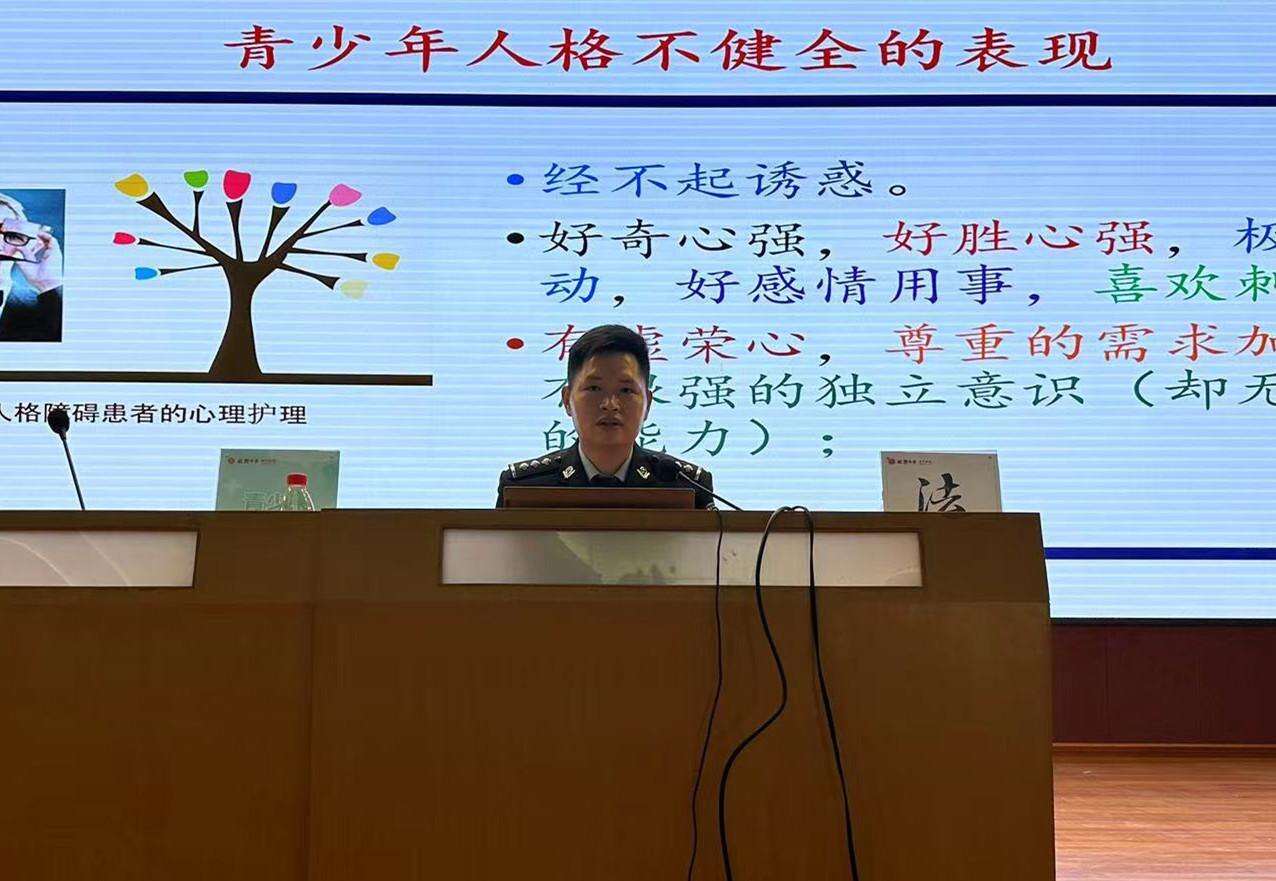 讲座中,胡警官首先从身心健康的定义入手,用深入浅出的语言、紧贴生活的事例,引出青少年法律意识相对薄弱、普法教育欠缺等问题,并结合青少年生理、心理发展规律及青少年犯罪特点,以案释法,以法论事,告诫同学们必须引以为戒,增强法治观念,提高法律意识,学会运用法律维护自己的合法权益、预防犯罪。“同学们一定要了解自身特点,培养自我认知能力,知法、懂法、守法,务必要严格遵守法律,不要轻易触碰法律的界线,否则将会导致极其严重的后果。”胡警官最后说。