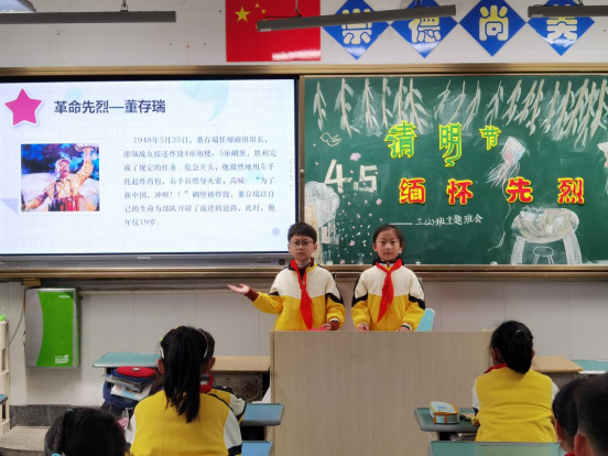 在这个草长莺飞,百花初绽,和风细雨的季节,又到了一年一度的清明节了。清明时节,为弘扬传统文化,缅怀革命先烈,激发爱国情感,绍兴市树人小学教育集团朝阳校区三(2)班组织开展了“缅怀革命先烈、传承红色基因”清明节主题班队会。
