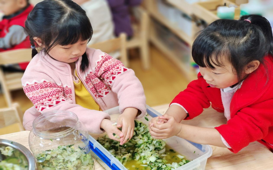 冬藏万物,岁月沉香。在立冬到来之时,幼儿园会开展“冬”躲“嬉”藏项目活动,将腌菜、风干、窖藏等习俗与劳动教育进行融合,让孩子们亲身体验这些储存方式,尝试使用劳动工具,回归生活用自己的双手去感知实践,品尝自己储存制作的美食,感受节气本土二十四节气习俗带来的教育意义,体会食物的来之不易和劳动人民的辛勤劳作,传承古代人的生活智慧,真正在生活中过节气,赋予生活一定的仪式感。