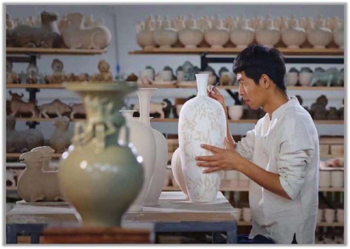 这几天,越窑青瓷烧制技艺非物质文化遗产代表性传承人顾少波十分忙碌,他的3件越窑青瓷作品成功入选杭州亚运会特许商品名录,即将上线对外出售。