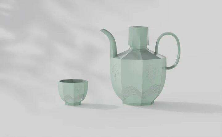 记者了解到,青影作品采用越窑青瓷传统秘色釉,壶身杯身纹以亚运吉祥物“江南忆”组合分别展现了不屈不挠、坚强刚毅的拼搏精神、海纳百川的时代精神、精致和谐的人文精神,以“潮涌”图形体现宋韵人文意蕴,也象征着新时代中国特色社会主义大潮的涌动和发展,器形八方棱角分明,寓意“客从八方来,喜迎八方客”,以壶斟酒,举杯迎客。