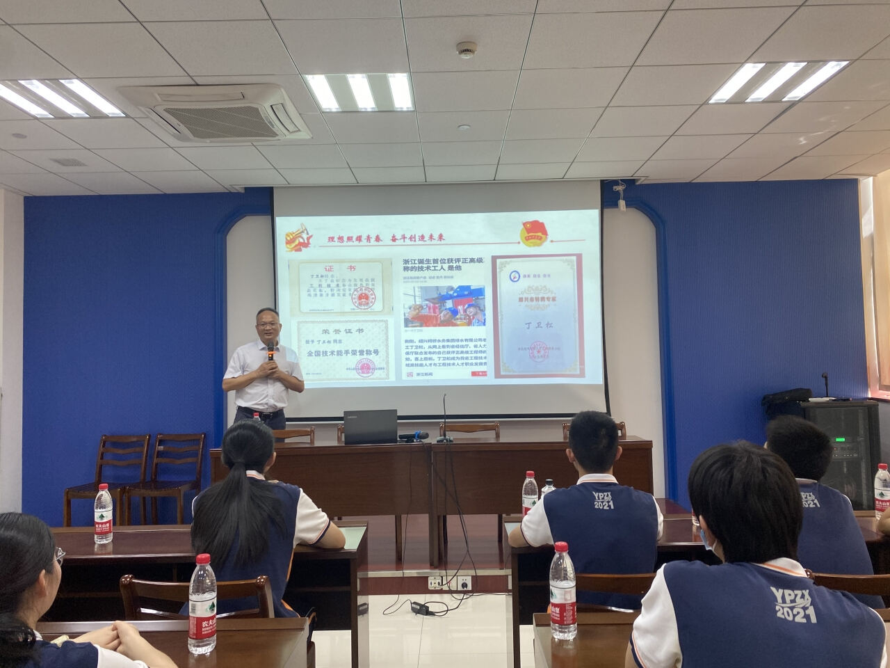 活动邀请了浙江省劳模、浙江工匠丁卫松先生,给同学们做了“我的工匠之路”主题报告,向同学们讲述了从最基层的锅炉维修工蜕变成是行业内大名鼎鼎的“管道医生”、“焊接状元”的心路历程。他还是浙江省第一个破格晋升正高级工程师的一线工人。