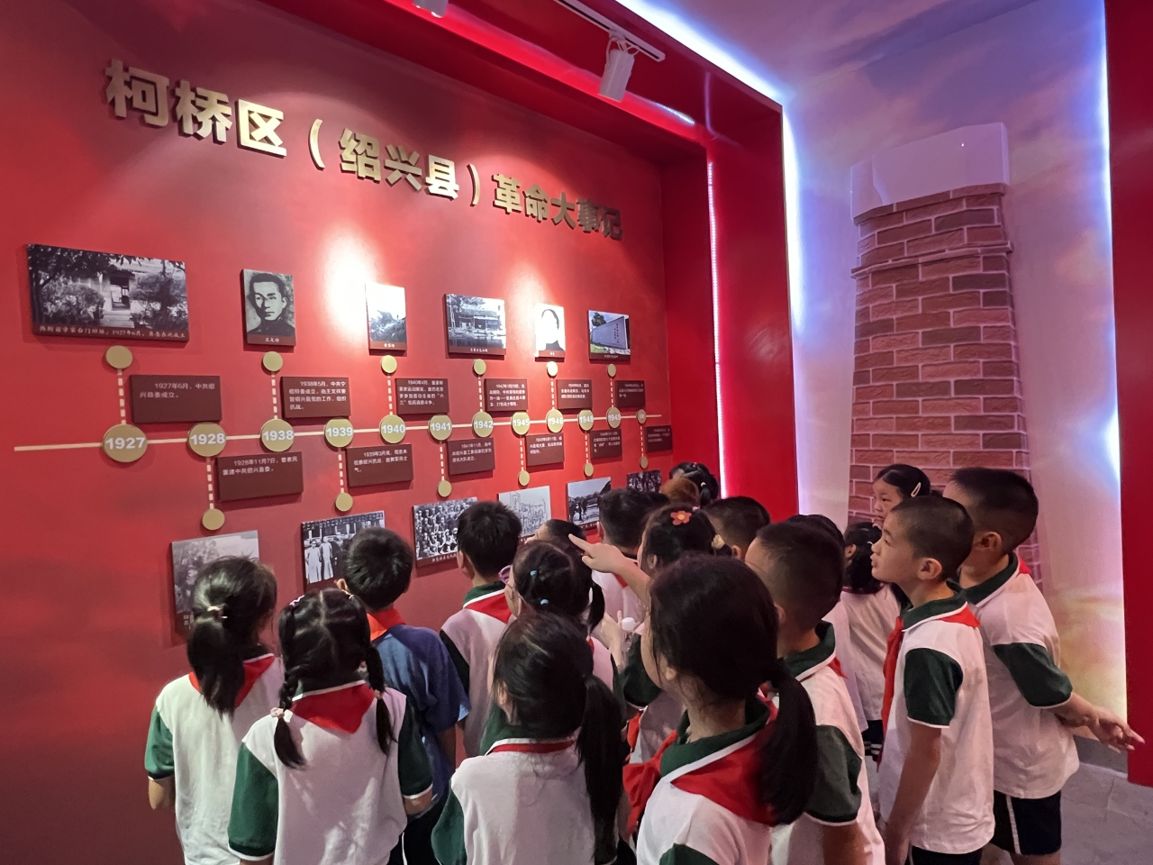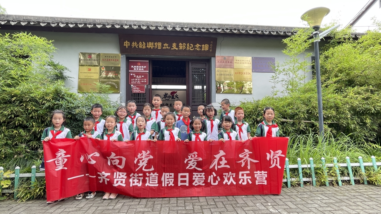 7月13日上午,绍兴市塔山小学107班向阳花公益小队的少先队员来到柯桥区齐贤龙山星火党团队红色基地,开展“红船向未来 奋进新时代”主题研学活动。