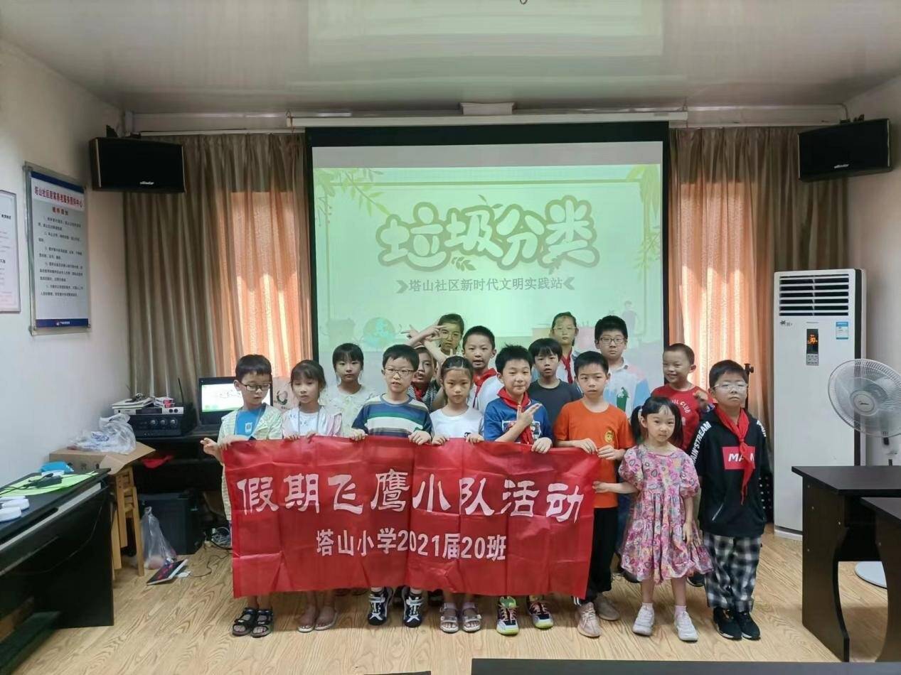 为进一步 培养青少年知分类、愿分类、懂分类的良好习惯,在生活中做垃圾分类的倡导者、参与者和宣传者,提高辖区学生及市民环保意识, 7月13日,越城区塔山社区新时代文明实践站组织塔山中心小学二(20)班飞鹰小队的队员们开展了垃圾分类小课堂活动。
