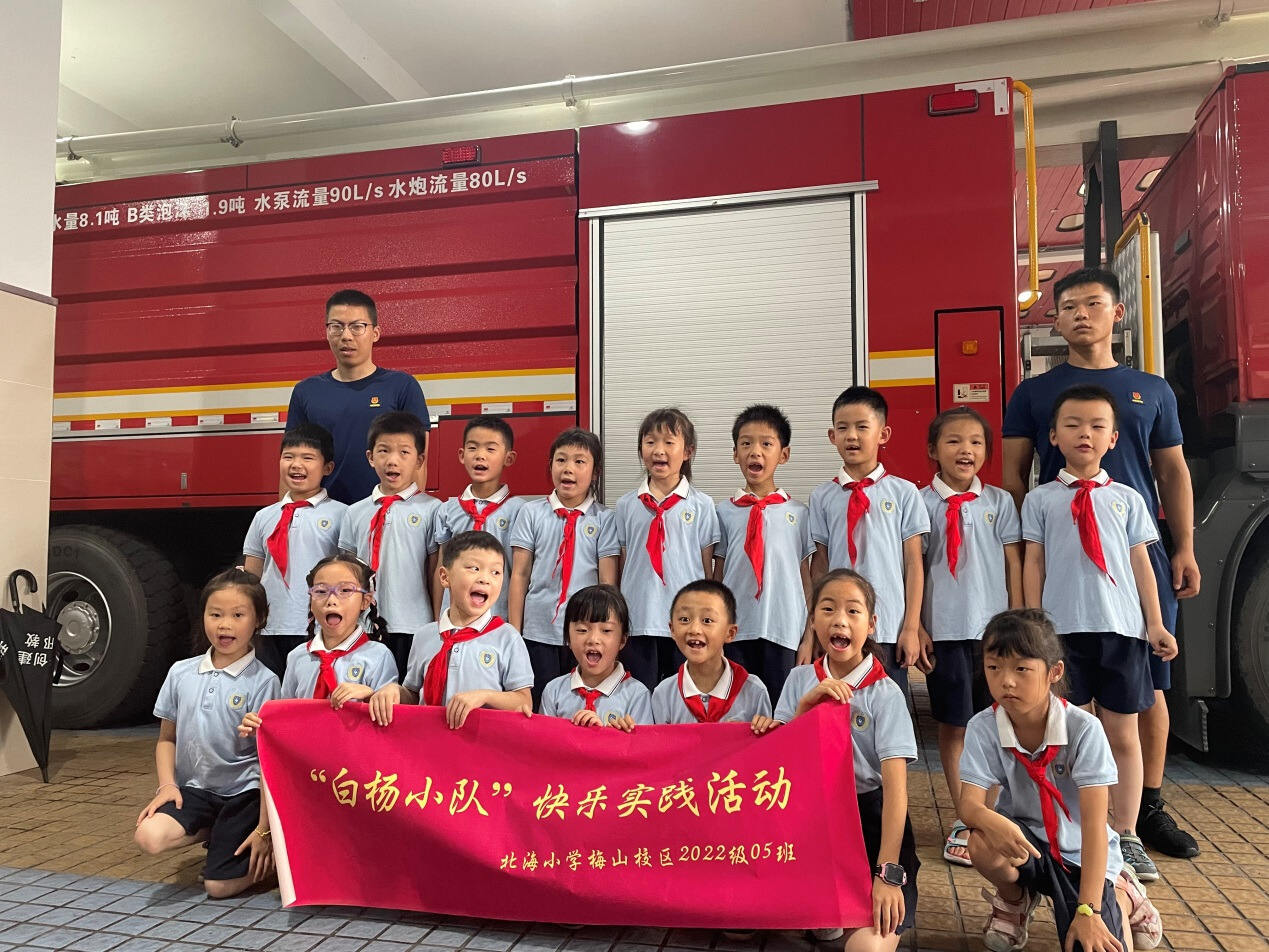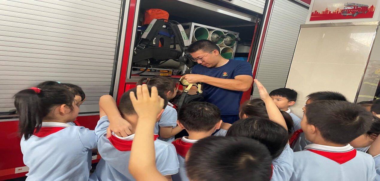 为进一步普及消防安全知识,提高消防安全防范意识,以及提升小朋友的社会实践能力,绍兴市北海小学梅山校区105班白杨小队的小朋友们来到了消防救援队。第一次这么近距离的接触消防车,小朋友们都兴奋不已!消防员叔叔带领孩子们参观消防车,面对各式各样的消防器材和装备,孩子们好奇地问这问那;消防员叔叔则耐心地向他们讲解并示范消防器材的使用。在整个体验过程中,孩子们时不时发出一阵阵的惊呼,将气氛掀向了高潮。在旁的家长们也纷纷感叹,平时忙于工作,视野也就局限于自己的工作范畴,本次讲解参观真是大开了眼界。