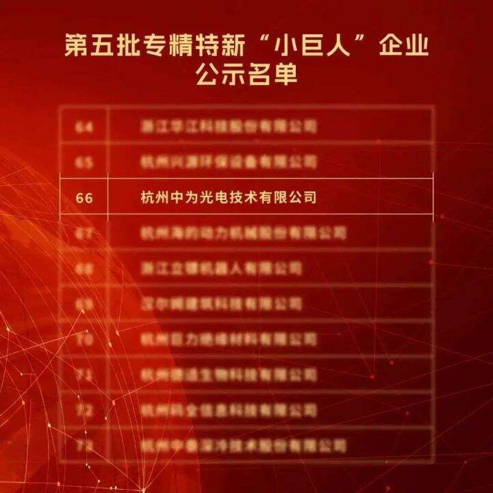 日前,工业和信息化部公示第五批专精特新“小巨人”企业名单,浙江晶盛机电股份有限公司旗下子公司,杭州中为光电技术有限公司榜上有名。