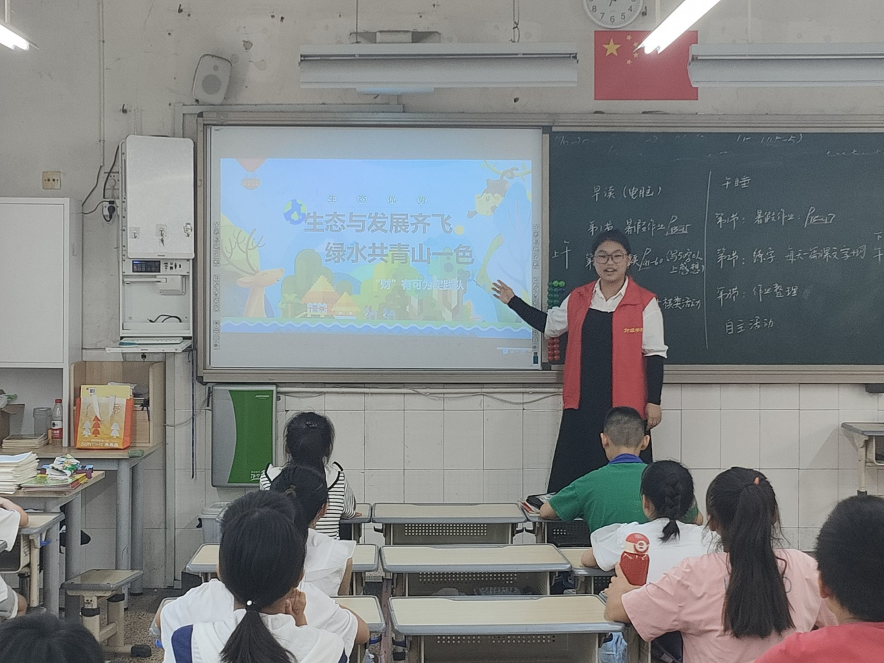 活动中,实践队员们为孩子们带来了主题宣讲课程,并借助知识竞猜、互动游戏、图片配对、击鼓传花知识问答、联想配对等多形式的互动活动,让课堂氛围更加有趣生动。