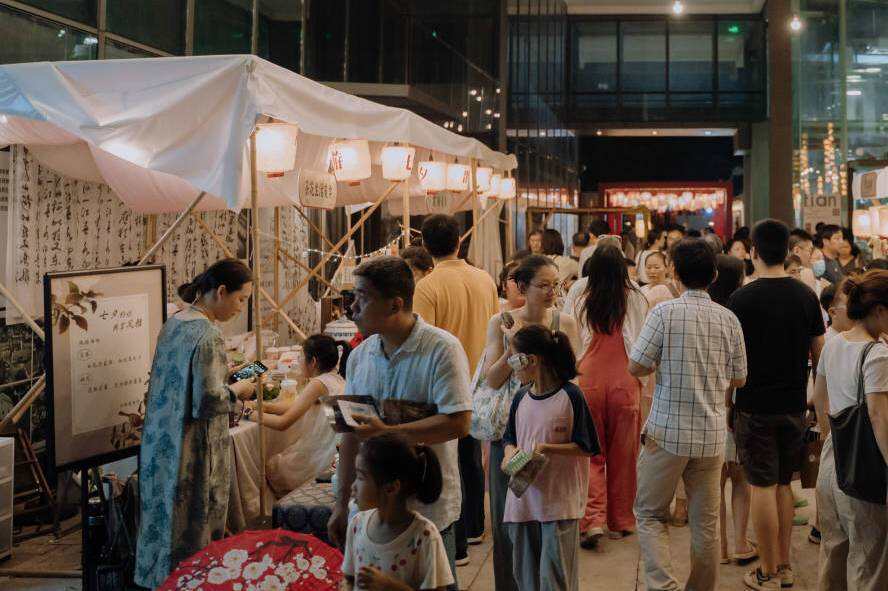 不过更重要的是城市夜间文旅新消费场景的打造。今年以来,越城区将文旅、商业、场景三者融合,充分调动游客热情,并转化为实际消费,实现旅游目的地的转型升级,变“流量”为“留量”。比如今年初新落成的10万平方米的迎恩天地综合体与8.8万平方米的风情水街业态互补、客群共享,将“体验经济”更好地结合历史文化,以全新的夜间经济消费集聚特色商业街区形态,吸引了周边及外地的旅游休闲客群来“过夜旅游”。