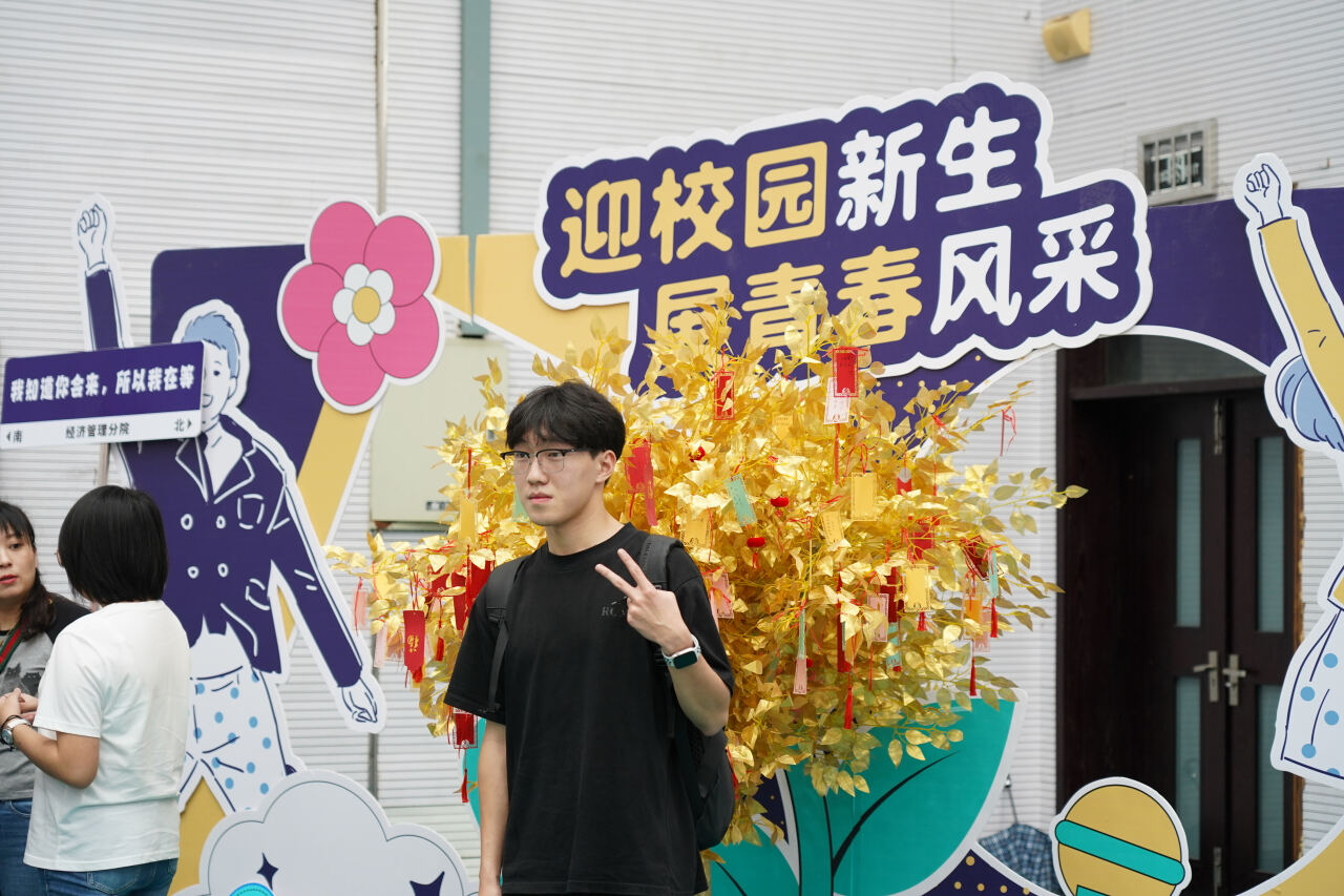 “同学,请往这边走。”在各分院迎新点,新生在班主任、班助的引导下,陆续完成签名确认、领取寝室钥匙和学生手册等入学报到流程。
