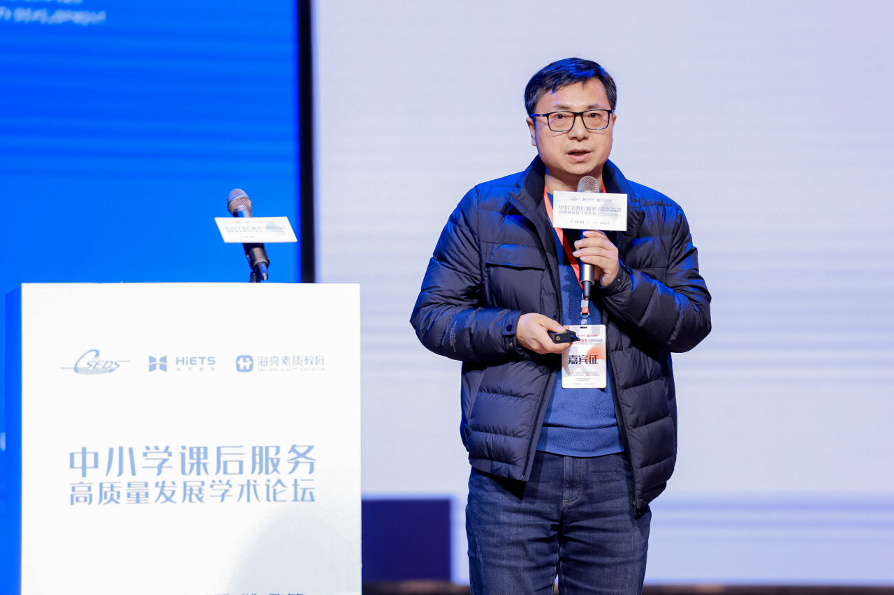 薛海平作主题为《“双减”背景下义务教育学校课后服务质量保障机制》的主旨报告。他表示,保障和提高课后服务质量是整个社会的期待,是落实“双减”政策、提高学校教育质量和营造良好教育生态的内在要求。他通过深入分析我国课后服务发展现状、质量保障机制构建,以及发达国家课后服务质量保障经验,提出了我国建设课后服务质量保障机制的三点核心思路:一是政府主导、社会力量参与,形成协同监管格局;二是“固本”和“开源”相结合,保障各项课后服务资源供给;三是建立动态评价与等级评定相结合的评价体系,提高课后服务的运行质量。