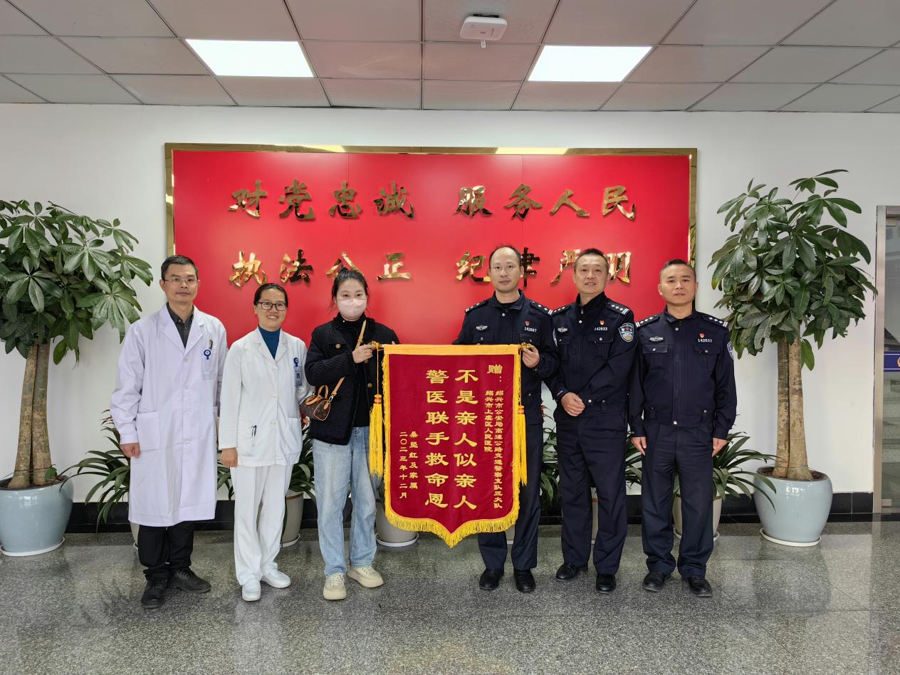 12月07日下午,桑某某的家属特地来到绍兴市公安局高速公路交警支队三大队,并送来一面锦旗,以表达对高速交警和上虞人民医院医生的感激之情。他们握住民警的手说:“感谢你们,挽救了我们一个家庭。”
