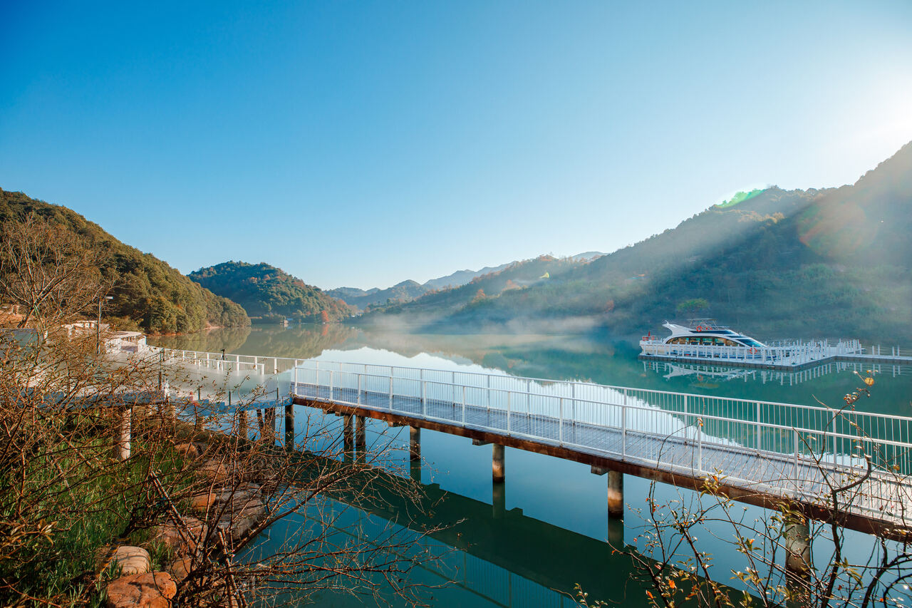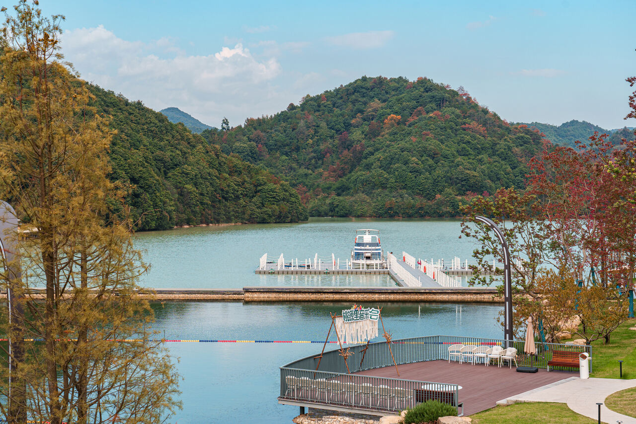 据了解,长三角户外运动的新网红打卡地——桃源里康养小镇位于绍兴城区南部山区,座落在素有“天然大氧吧、城市后花园”之称的4A级会稽山旅游度假区南麓的兰若湖畔。这里拥有得天独厚的地理位置和生态环境。周边森林覆盖率高达78%,负氧离子含量高,被誉为“兰若湖畔 长寿胜地”。