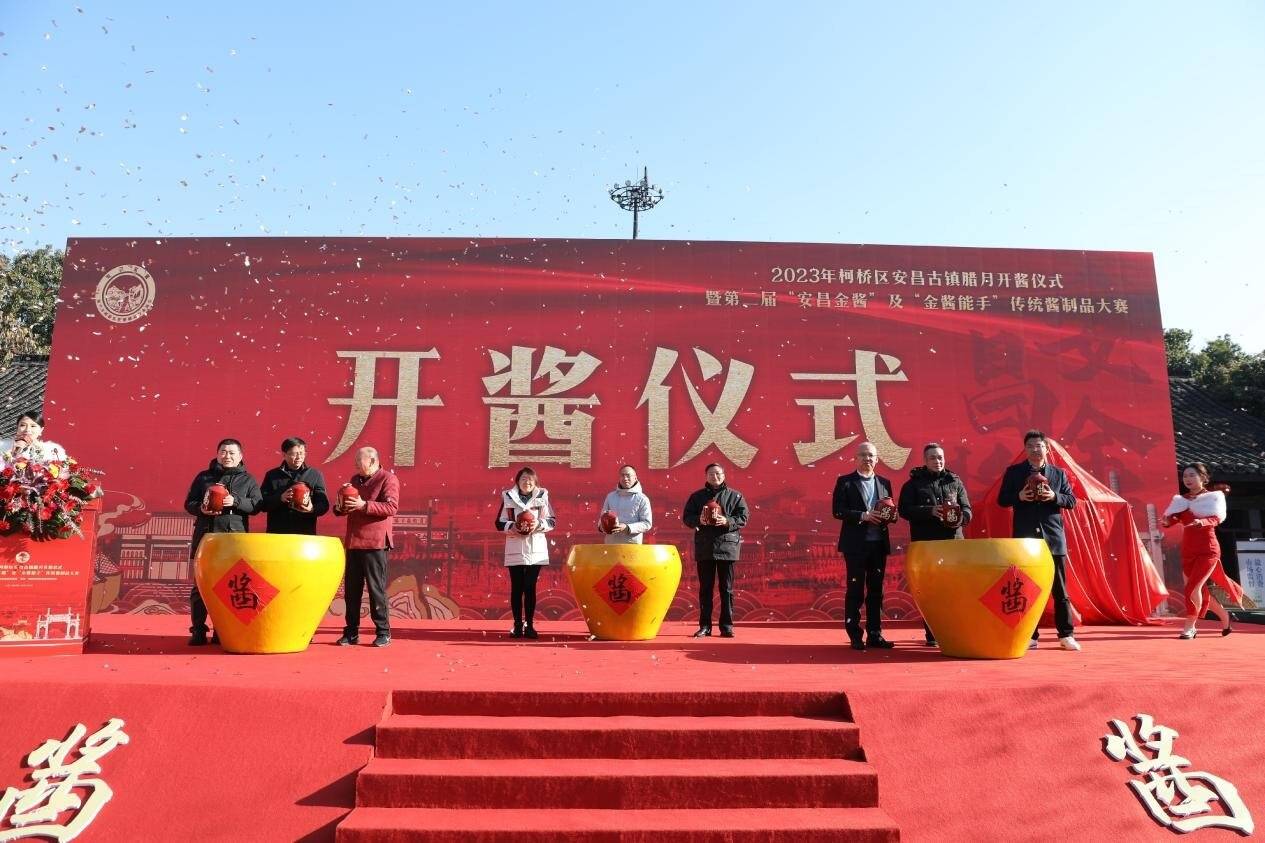 12月22日上午,由柯桥区安昌街道办事处主办,柯桥区酱醉制品行业协会承办的2023年安昌古镇腊月开酱仪式暨第二届“安昌金酱”及“金酱能手”传统酱制品大赛在安昌古镇举办,20多家本地知名酱醉制品企业和作坊现场比“酱品”。