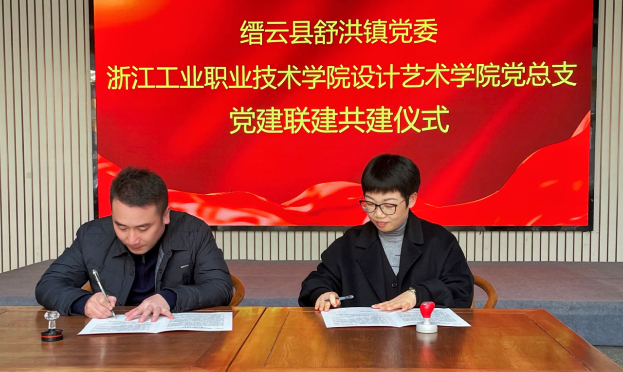 近日,在缙云县舒洪镇爽面博物馆,浙江工业职业技术学院设计与艺术学院党总支与缙云县舒洪镇党委党举行建联建共建签约仪式。
