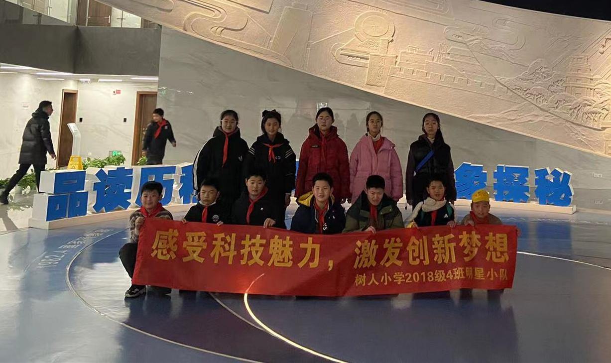 2月4日下午,尽管天空下着冬雨,却阻挡不住绍兴市树人小学教育集团2018级4班明星小队的探索脚步。寒假才开始,这群热情洋溢的孩子们便迫不及待地来到绍兴气象博物馆,参加“感受科技魅力 激发创新梦想”活动。