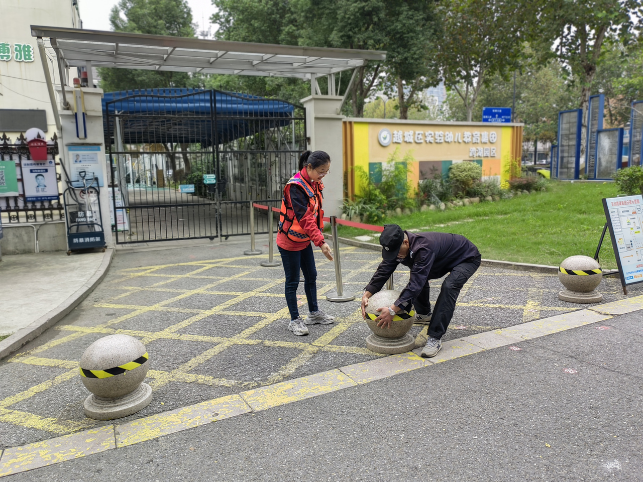为加强校园安保,筑牢安全防线,近日,越城区实验幼教集团联合属地派出所,开展“校园防冲撞设施”优化及督查值班护学岗行动。